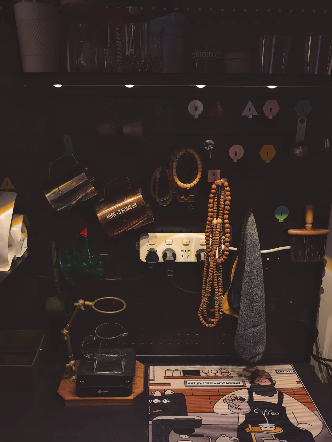 大几百手搓一个快乐小吧台 两个铁艺柜子组合。多出来的空间刚好可以放下一个红酒柜。由于咖啡机太长,一般的柜子放不下。搞了两个木箱。刚刚好… 原本买的黑色排插,但是得倒着装,只能换个白的去做显眼包了。 小小的角落,大大的快乐