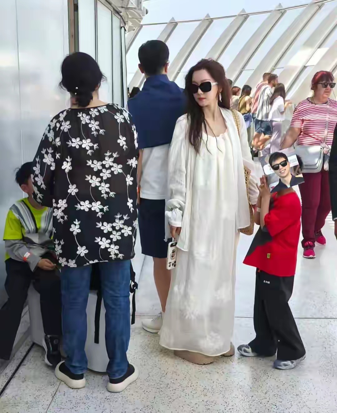 张天爱跟素人合影,胯真的好宽,大宅院似的