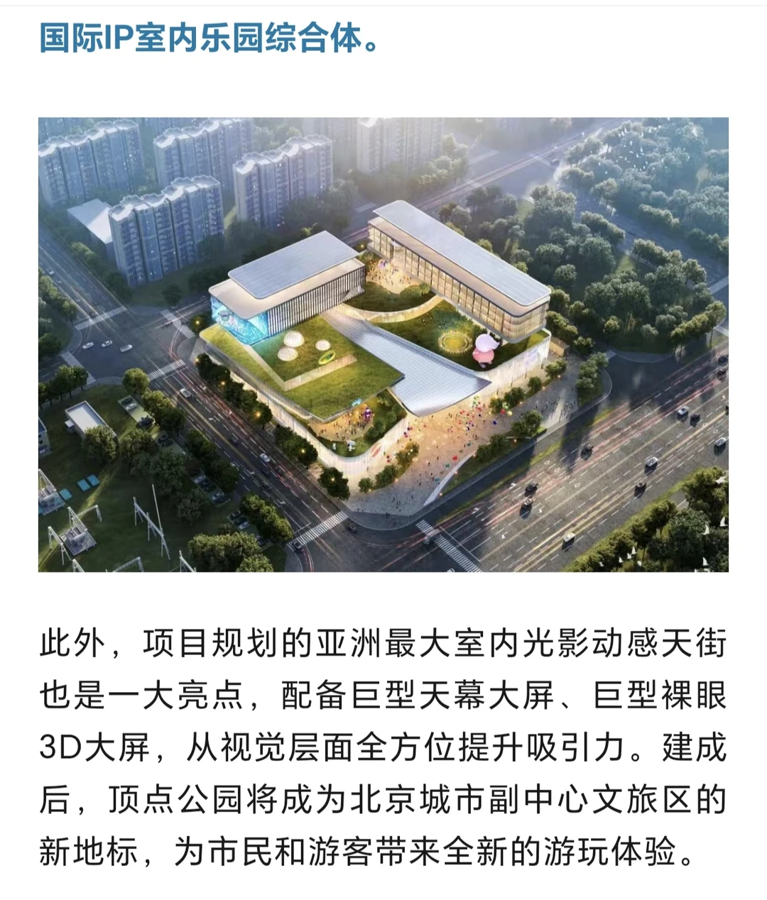 北京宝妈狂喜!亚洲最大室内儿童乐园今年开业啦🎡 就在副中心7号线万盛东/西站旁的顶点公园,魔方造型超童趣,地铁直达超方便~ 全球首家小猪佩奇冰雪乐园太戳了!复刻动画的友谊树屋、冰雪城堡,还有人工降雪,秒进童话世界❄️ 芭比、托马斯、史努比、天线宝宝超多国际IP全集结,绘儿乐还能玩创意涂鸦,大人小孩都能沉浸式嗨玩~ 还有亚洲最大室内光影天街,巨型天幕+裸眼3D大屏,逛吃玩一站式搞定,以后遛娃再也不用看天气啦✨