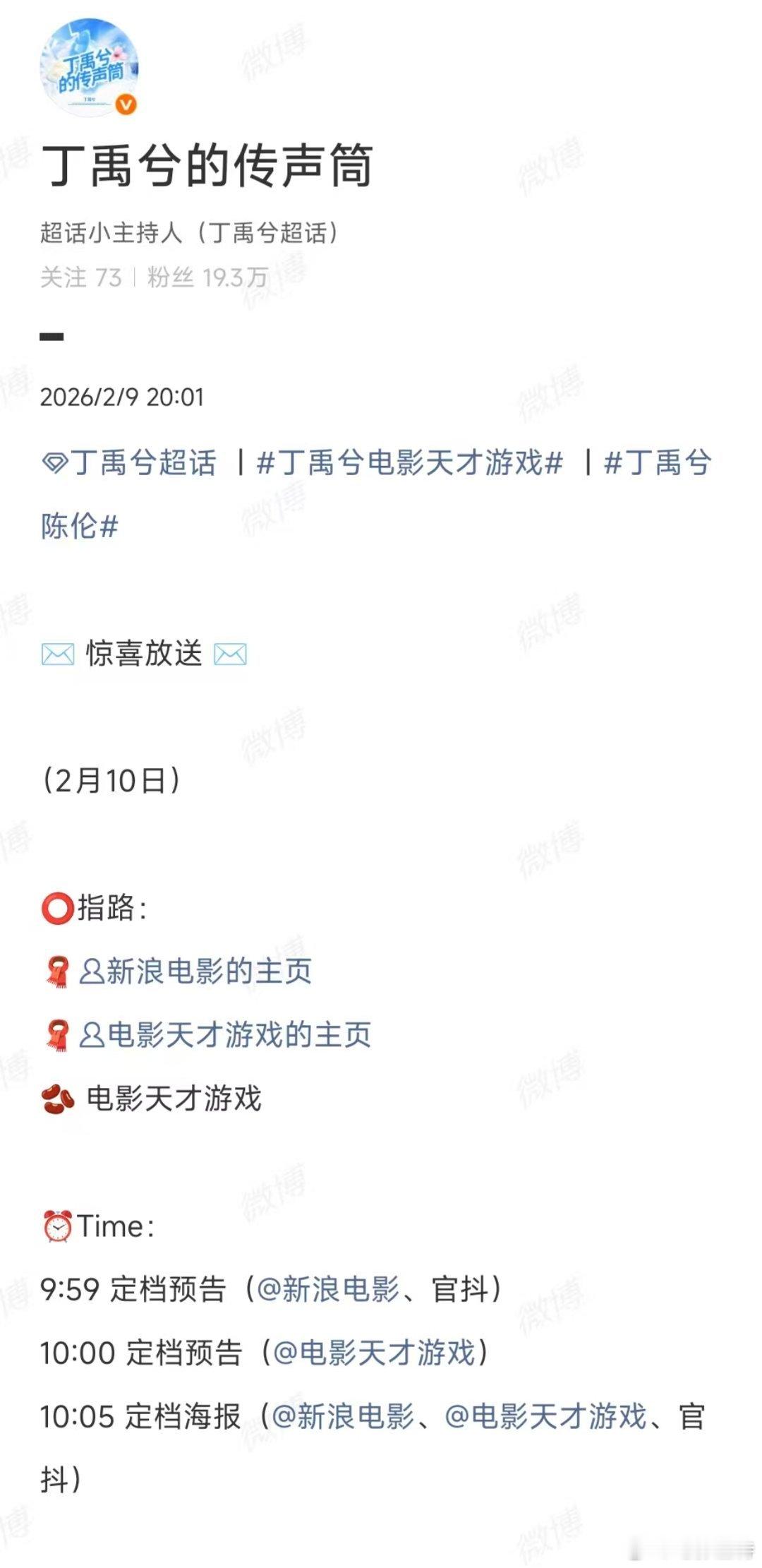 听听温特怎么说丁禹兮大粉透露明天《天才游戏》定档。这片子猫眼出品发行彭昱畅丁禹兮