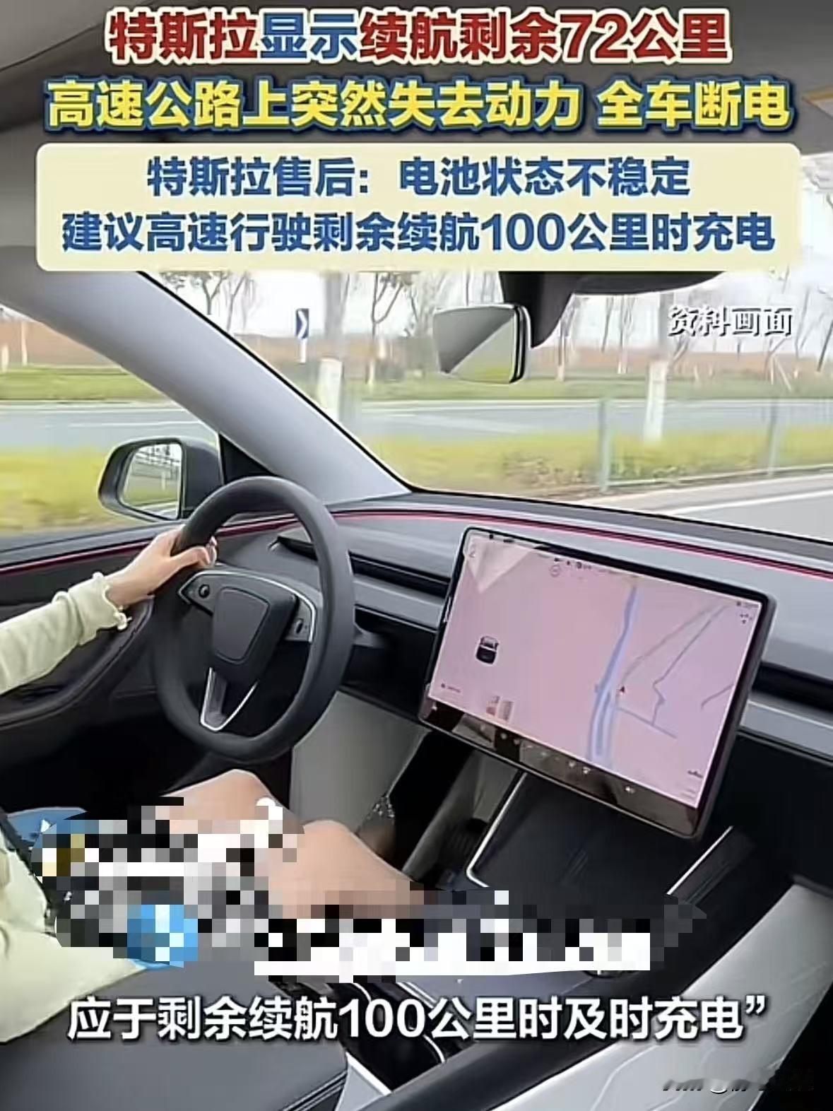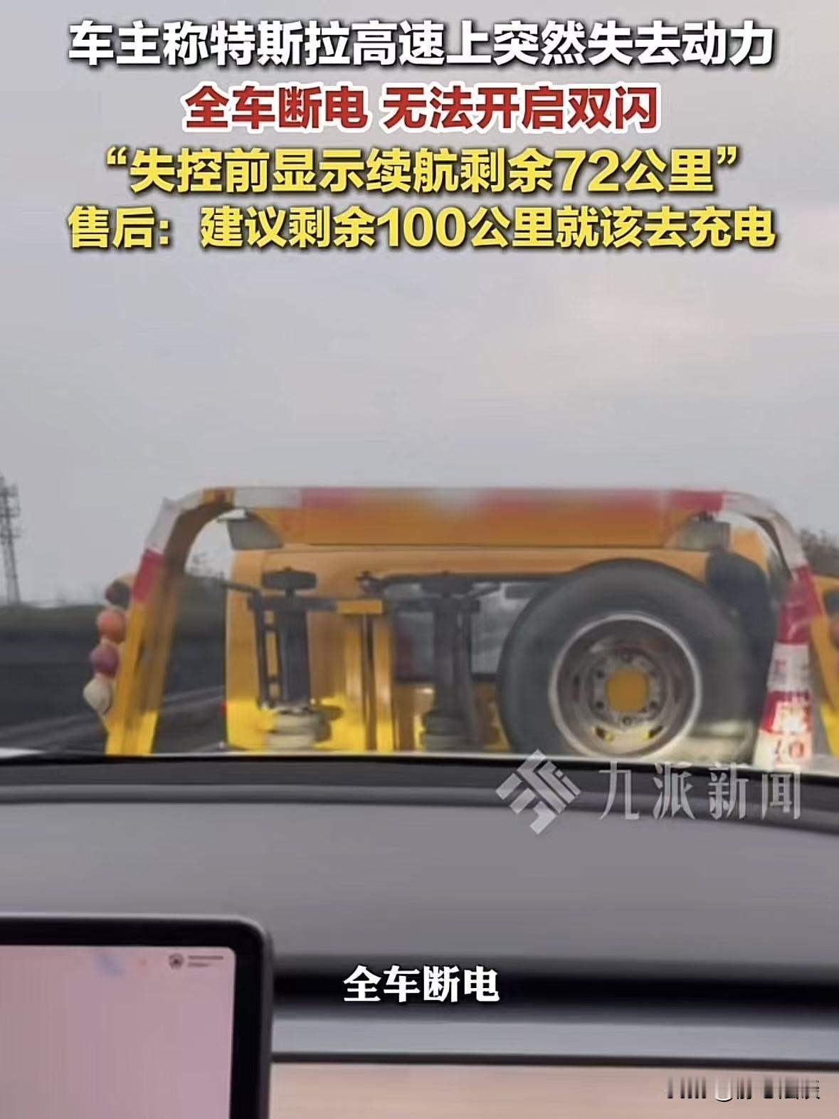 “这跟故意杀 人有什么区别?”上海,女子开新能源汽车上高速,在距离2公里到服务区的时候,直接急停到路上,无法行驶连双闪都无法打开,可是车上显示续航还有72公里,女子吓坏了,幸运的是道路救援及时赶到,将车拖走,事后,女子找到品牌售后,讨要说法,让她万万没想到,售后告诉女子电池不稳定,以后电量剩余100就赶紧充电,对此,女子不能接受,完全是推卸责任,一气之下将此事发到网上! 陈女士有一辆2022款的特斯拉Model Y汽车。 2026年2月7日,陈女士驾驶这辆车从台州前往上海。 本来就是一次普普通通的驾驶,结果在高速上遭遇了这辈子都忘不了的惊魂时刻。 陈女士平时开车就特别稳,一这一路也没有急刹车,急加速的情况。 就是按照平时开电车的习惯,路上她发现续航还有72公里的时候,就想着一会下服务区充电电。 导航上显示,最近的一个服务区只有2公里,陈女士想着就进下去充,没必要等没电了再去。 让她万万没想到的是,就在离服务区越来越近,马上就要拐进匝道的时候,车子突然强制降速。 车速一下子被压下来,陈女士当时就懵了,还没反应过来,紧接着动力系统彻底断了。 整车直接失去驱动能力,更可怕的是,全车直接断电,整个车瞬间变成一块没任何反应的铁疙瘩。 陈女士第一反应就是打双闪,想提醒后车避让。 毕竟这高速路上,车来车往,每辆车都开得飞快,最少都一百多码的速度。 可让她绝望的是,不管她怎么按双闪开关,都一点反应都没有,双闪也失灵。 自己的车突然停在路中间,没动力、没刹车辅助、连警示灯都开不了,陈女士彻底慌了。 她坐在车里,脑子一片空白,手脚都冰凉,又怕又绝望,她盯着后视镜,就怕后面的车没注意,直接撞上来。 好在高速交警和道路救援来得特别快,还叫来服务区的工作人员一起过来帮忙。 大家费了好大劲才把这辆没动力、没电的Model Y挪到应急车道、挪到安全区域。 不管怎么说,总算是有惊无险,没出任何交通事故,也没人受伤。 陈女士也不是爱找事的人,她想着现在车子出问题,只要能查出问题、修好就行。 她事后联系了品牌的官方售后,把高速上突然断电、强制降速、双闪失灵的情况一五一十说了,就想问问到底是什么原因。 是电池问题、系统问题,还是车子本身的故障,毕竟这关系到以后的行车安全,谁也不想再经历一次。 谁知道,品牌售后的回复,直接没把人气死。 售后的态度,听闻此事,特别敷衍:电池状态不稳定,还说陈女士的车已经过保。 售后建议陈女士,以后跑高速,电量剩100公里就赶紧去充电。 这话一说出来,陈女士直接气笑了,也彻底火了。 陈女士自己说,她不是不讲理的人,完全理解电车的各种客观情况。 比如冬天低温电池有虚电、车子用久了电池有正常损耗,这些她都懂,也都能接受。 但问题是,表显还有70多公里续航,离服务区就2公里,车子直接全车断电趴窝。 这根本不是正常损耗、不是虚电的问题,这是严重的安全隐患。 虚电顶多是续航不准,少跑点路,怎么会直接全车断电、连双闪都开不了? 《产品质量法》第26条:生产者应当对其生产的产品质量负责,产品不存在危及人身、财产安全的不合理的危险,有保障人体健康和人身、财产安全的标准、行业标准的,应当符合该标准。 陈女士表示车虽然已经过保了,但过保不代表车子可以出这种严重故障。 车子是你们造的,电池管理系统是你做的,续航表显是你提供的。 用户按照表显续航正常开车,结果突然断电停在高速上,这难道是用户的错吗? 难道以后开特斯拉跑高速,都要不管表显多少,剩100公里就必须充电,那表显续航还有什么意义? 陈女士一气之下把此事发到网上,让大家评评理。 没想到一下子炸出了好多同款遭遇的同款车车主,大家纷纷留言共鸣。 说自己也遇到过表显续航和实际续航严重不符、高速突然断电、动力中断的情况。 有的也是剩几十公里续航突然趴窝,有的甚至在市区里就断电。 售后也是一样的敷衍,要么说电池不稳定,要么说用户驾驶习惯不好,从来不肯正视车子本身的问题。 不得不说,该品牌座位新能源头部品牌,销量那么高,用户那么多,更应该对车主的安全负责。 而不是出了问题就甩锅给电池不稳定、让车主自己提前充电,用一句轻飘飘的话敷衍过去。 车主要的不是建议,是故障原因,是解决方案,是一个负责任的态度,而不是被当成“不懂车、不会充电”的外行来教训。 陈女士这件事,万幸的是没出事,救援及时,捡回了平安,但不是每一个车主都能这么幸运。 如果后面有车没及时避让,如果救援晚到几分钟,后果真的不堪设想。 也希望所有品牌都能明白,车主要的从来不是免责的说辞,而是一份踏踏实实的行车安全感。 对此,你怎么看这件事! @静心法谈 学法辨是非,慬法不吃亏。