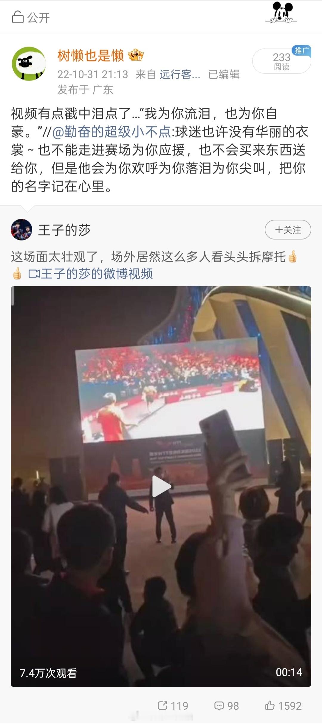 网页链接 这条又让我想起22新乡男单决赛了🥹🇨🇳 同样的外战对手,而且当时也是有个视频,大屏下有很多人都在为小王欢呼还有昨晚赛前训练看到巧克力,包括赛后刷到他和小王拍掌(网页链接)真的会反复想起一些“决心和态度”“冲他脸上喊”ps:那个告谄媚得有点不太适应、、
