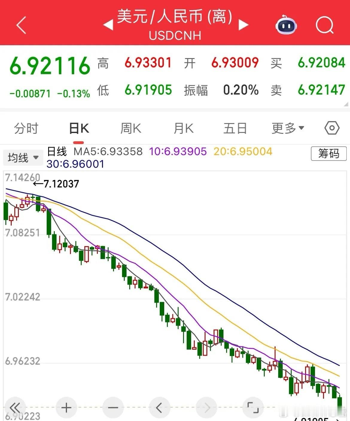 人民币兑美元汇率走强至6.91905,突破6.92关口创2023年5月以来新高,从前期高点7.26917顺利站上7这一重要心理位。美元指数日内跌0.40%,自110高点累计跌幅超10%,美联储降息预期升温推动其持续下行,非美货币集体升值。