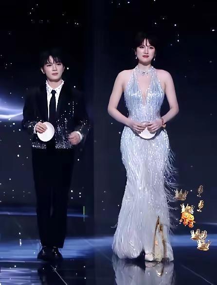 谁能想到!1.7米的姚安娜和1.61米的周深同框,画面简直自带喜剧效果——姚安娜走一步,周深得紧赶三步才跟得上,对唱时周深仰着头领带都快崩开了,姚安娜低头时发梢都快扫到他头顶。 本想靠西装撑气场的周深,站在姚安娜身边愣是成了“反差萌担当”,抬头仰望的样子像只努力够树枝的小松鼠。网友辣评:这哪是对唱,分明是“最萌身高差”现场教学,周深的男子汉气概在身高差面前碎成了星星渣。 其实哪用纠结气场,周深一开口那嗓子直接杀疯了,高音飙起来的时候,谁还在乎谁低头谁仰望?实力才是最硬的“增高垫”,这话放周深身上再合适不过。 只能说这安排太懂流量密码了,光看这身高差就够网友笑三天,再配上周深的神仙嗓音,不火都难!