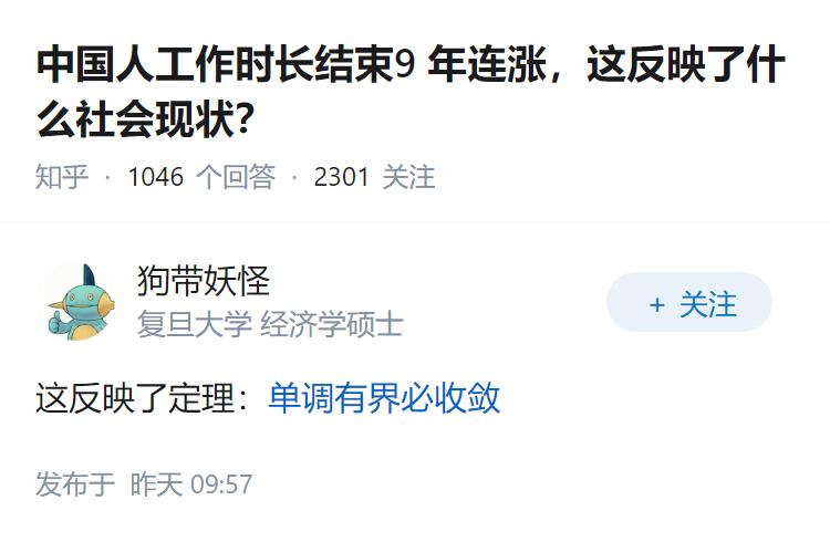 中国人工作时长结束9 年连涨,这反映了什么社会现状?