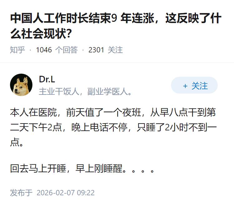 中国人工作时长结束9 年连涨,这反映了什么社会现状?