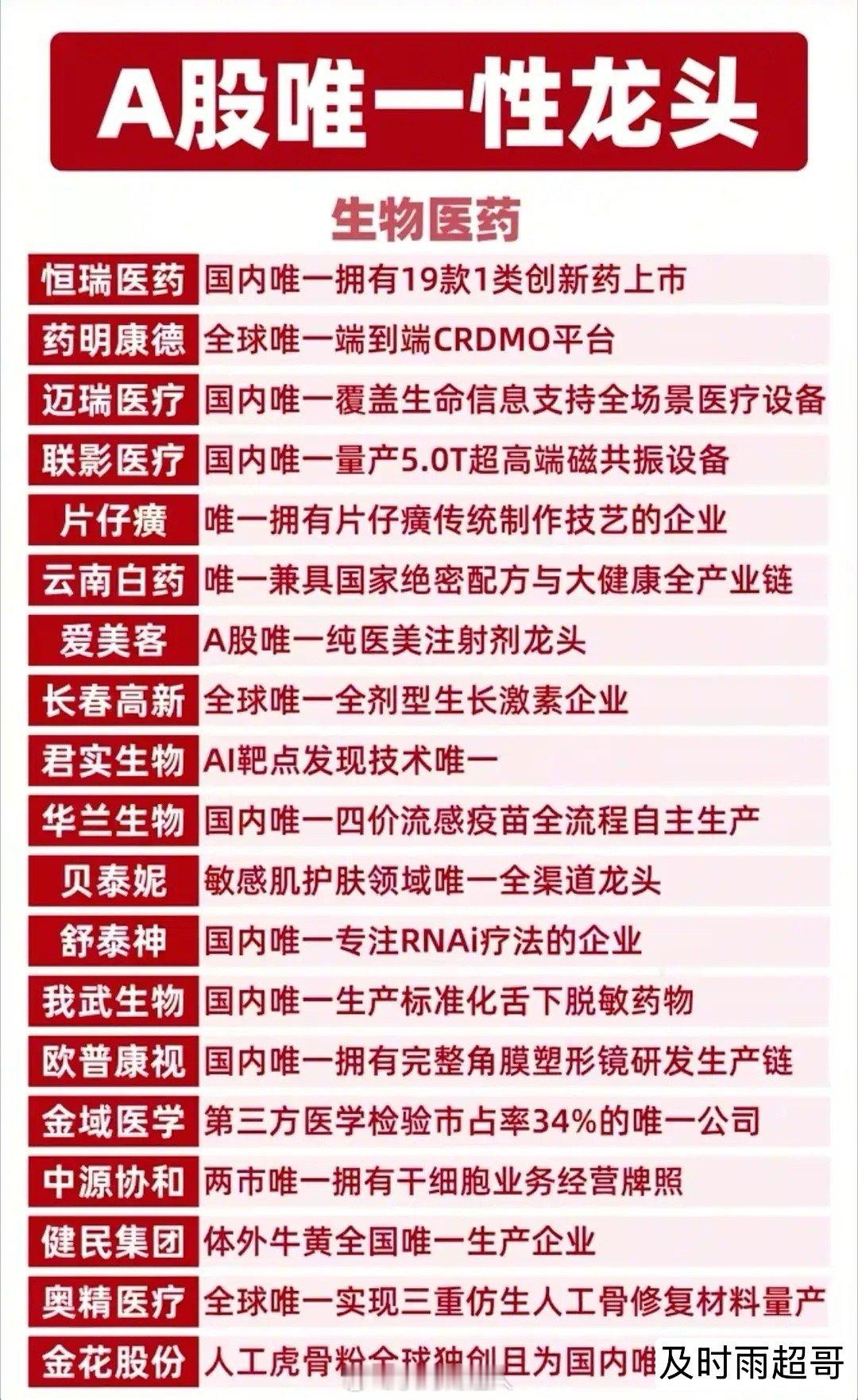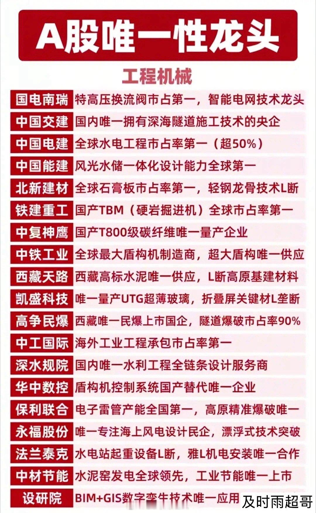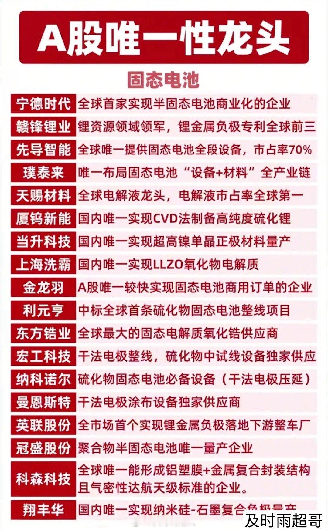 A股唯一性龙头全梳理!核心标的值得硬核收藏!这份名单涵盖能源资源、固态电池、工程