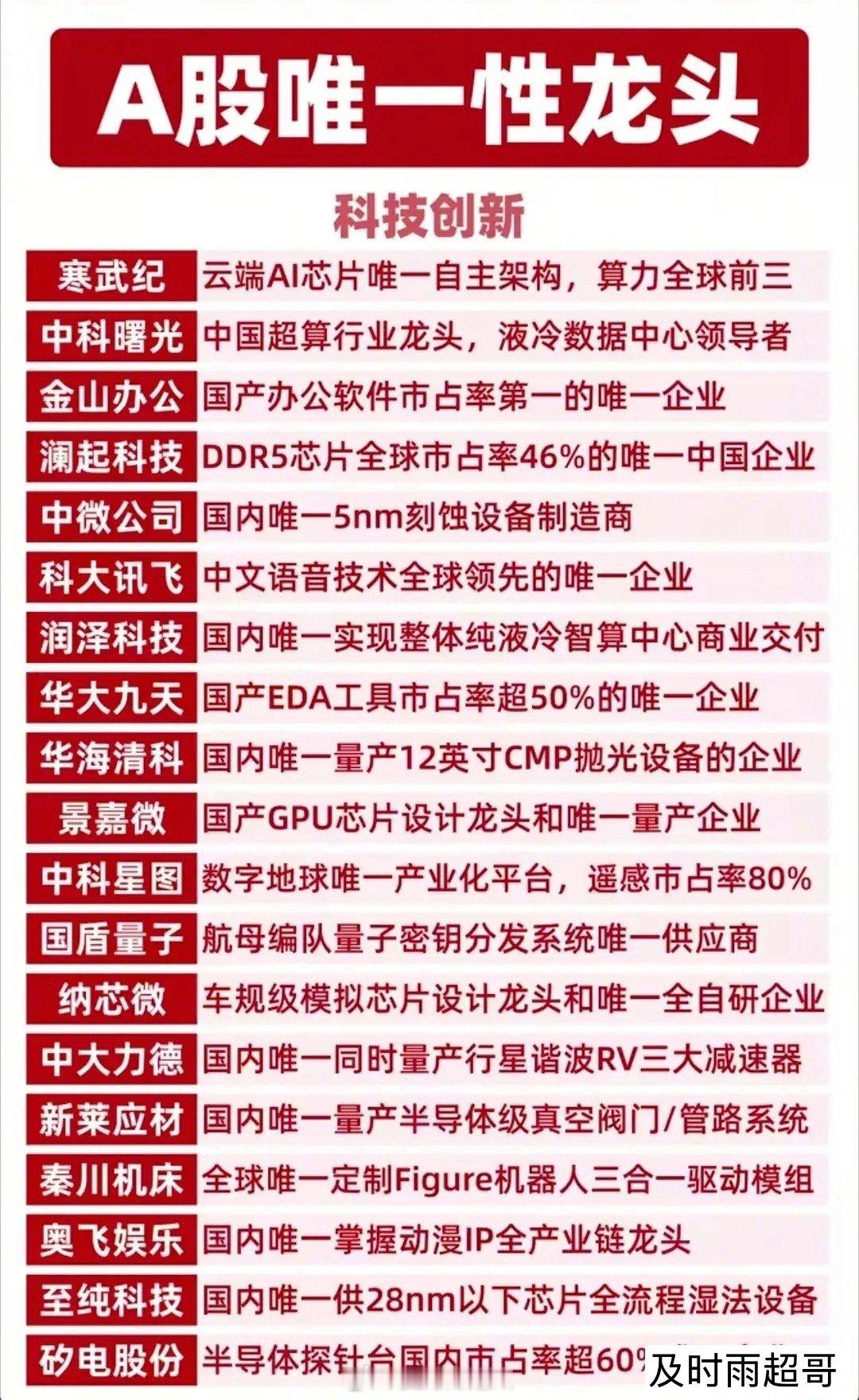 硬核科技叠加唯一性的公司代表:中科曙光、恒瑞医药、科大讯飞、金山办公、华中数控等等。(唯一性不代表股价趋势,资料仅供参考)