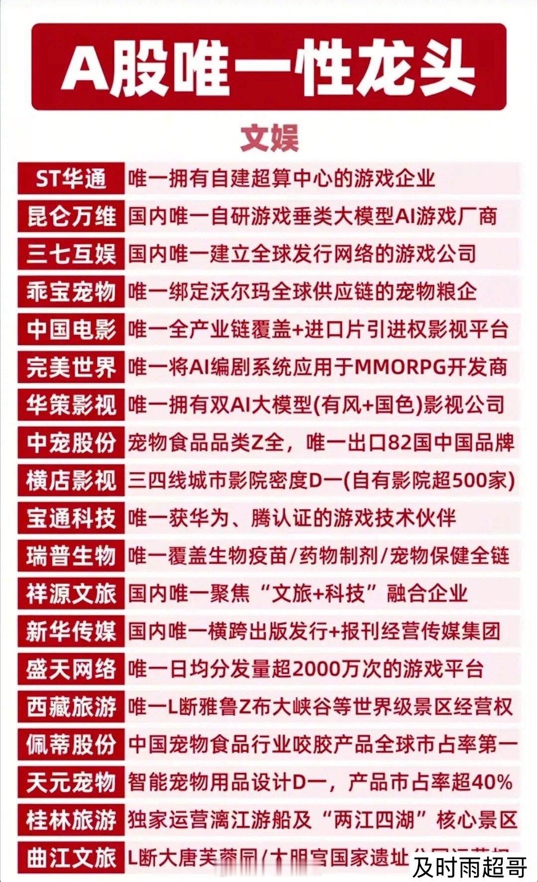 A股唯一性龙头全梳理!核心标的值得硬核收藏!这份名单涵盖能源资源、固态电池、工程机械、文娱、消费、生物医药、科技创新七大核心赛道,挖掘各领域真正具备“唯一性”的龙头企业。硬核逻辑,一眼看懂核心竞争力,赛道龙头,把握产业发展主脉络。这份名单,是你布局A股的硬核参考,建议收藏反复研究!