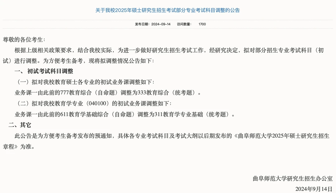 曲阜师范确实老六,去年大部分统考你不改,今年剩不到100天了你改了[汗颜R]也还好吧,最起码比报完名之后改强很多! 只不过对于本来按照777复习的学生们有点不太友好。 加油吧[哇R]