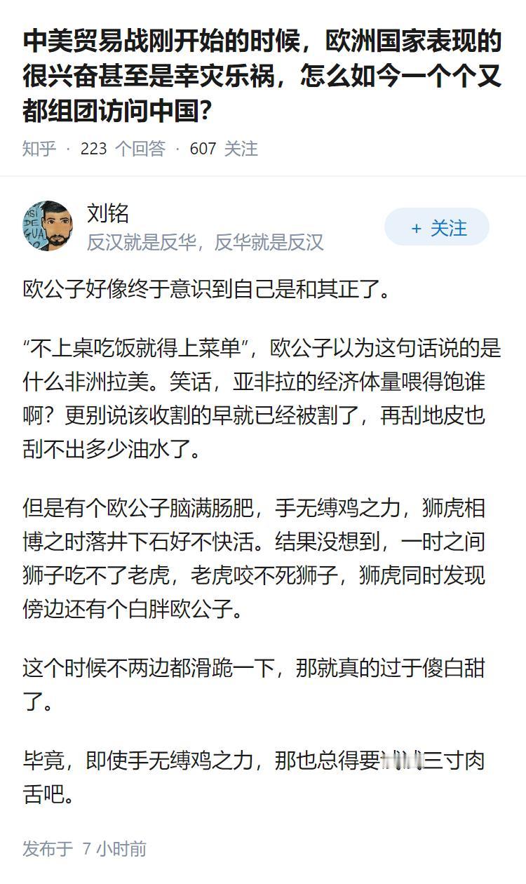 中美贸易战刚开始的时候,欧洲国家表现的很兴奋甚至是幸灾乐祸,怎么如今一个个又都组团访问中国?