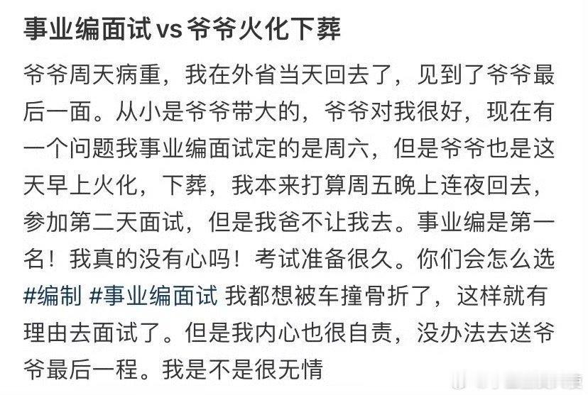 事业编面试vs爷爷火化下葬