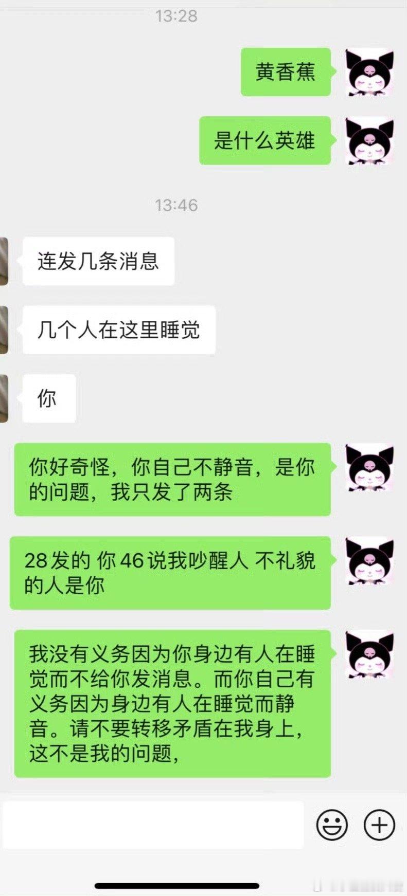 中午给对象发消息他说我吵别人睡觉。