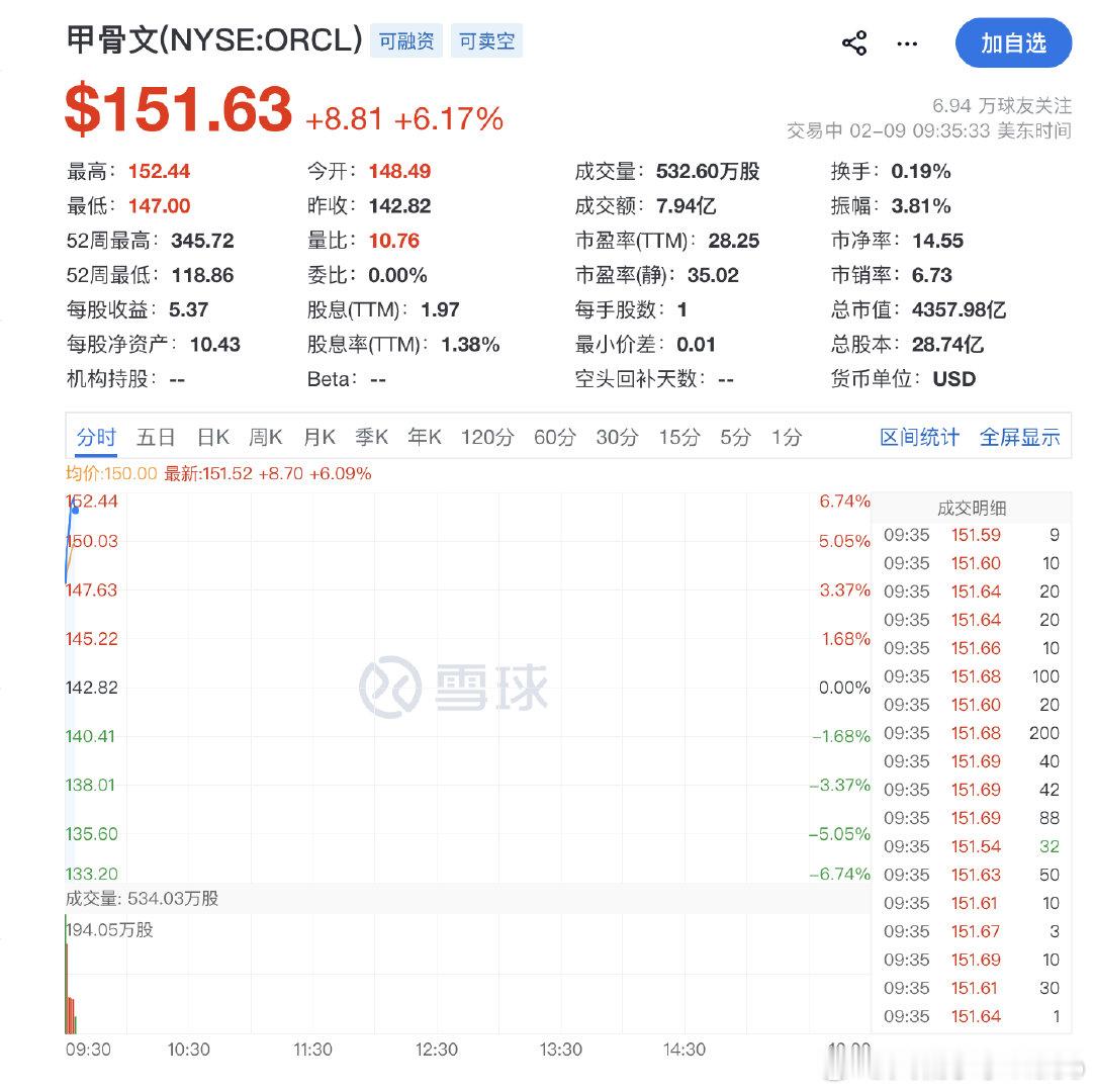 【甲骨文大涨6%】2月9日,甲骨文盘中大涨6%,创去年12月以来最大涨幅。(金十数据) 诺和诺德涨逾5% 美存储概念走弱