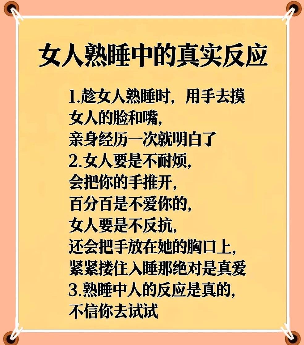 最近一条“测真爱靠半夜摸脸”的土味攻略在朋友圈轮番刷屏,套路是男方趁女友熟睡把手贴到脸上,女生要是缩手就判刑,要是安心依偎就是真爱,看似浪漫,本质像极了小学生的真心话大冒险,但留言区一堆兄弟连夜实操,有人夸成功解锁“搂着睡到天亮”,有人自述手被拍得生疼,甚至还有情侣直接吵翻,热闹之余,问题也摆上桌面,这招到底靠不靠谱. 先看生理学,北京大学心理与认知科学学院李松蔚在采访时提到,熟睡阶段肌肉张力下降,人对外界刺激的反应更多是条件反射,推开也许是习惯性护脸,不推可能是还没醒过来,和爱不爱扯不上等号,医学期刊《Sleep》一项对百余名受试者的多夜多导睡眠实验也显示,人在深睡期对轻触的觉醒率不足12%,这意味着一大半人根本不知道你碰过他,要用这种无意识动作来论感情,逻辑等于拿掷骰子测升学率. 再看法律层面,最高法2021年发布的性侵害典型案例强调,睡眠状态下无法给出有效同意,若触碰带有性暗示且未获许可,轻则治安处罚,重则按猥亵甚至强制猥亵入刑,换言之,一场所谓“真爱测试”出了事,录个视频发上网,证据链分分钟反咬你,社交平台早有因玩闹触法的前车之鉴,别拿无知当浪漫. 舆论也在反噬,我在微博搜了一下“摸脸试爱”,阅读量冲到三千万却点赞寥寥,高赞评论清一色吐槽“别祸害人”“这么不尊重”,B站也出现科普打脸视频,up主用一只猫演示,猫咪半梦半醒被摸鼻子本能打爪,弹幕刷起“按这逻辑猫不爱你”,可以说网友的集体冷幽默比方法本身更醒脑. 感情里最怕的不是被推开,而是把对方当成实验小白鼠,真爱不是黑箱测试,而是清醒时愿意把底牌亮在桌面,如果你非得等对方睡着才敢求答案,那答案其实已经写好了,问题来了,你会放下手机,坐下来好好聊一聊吗.