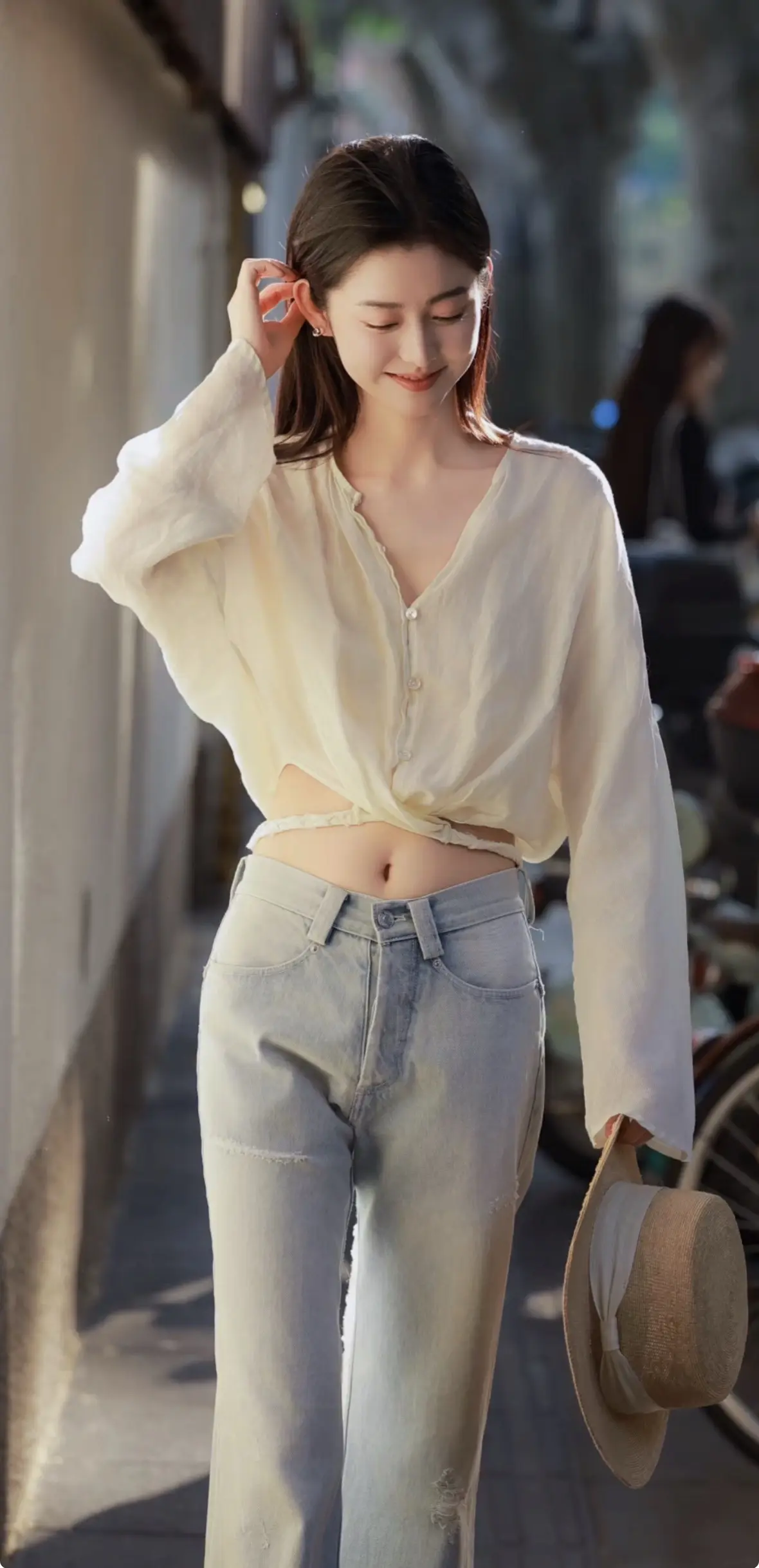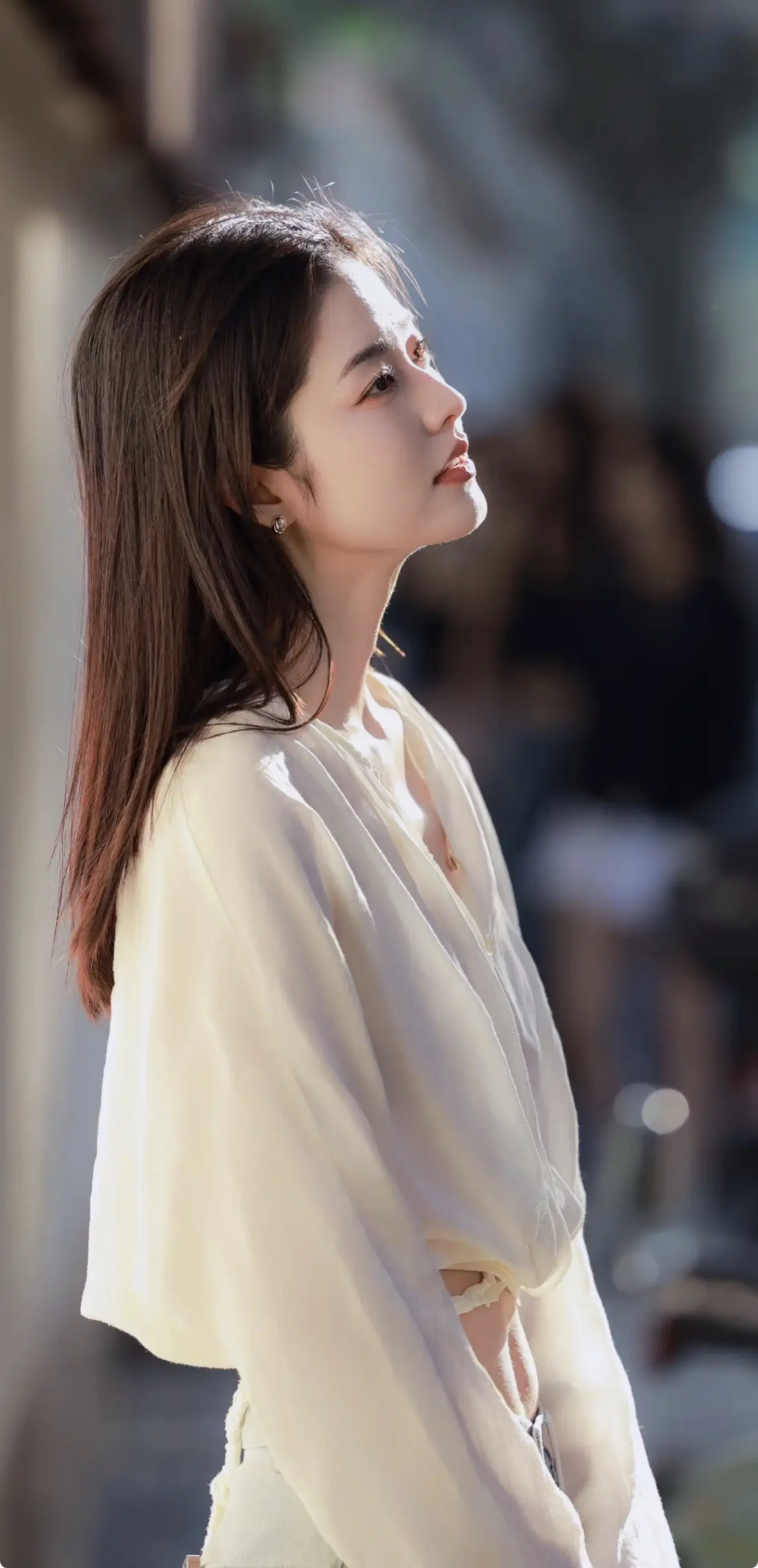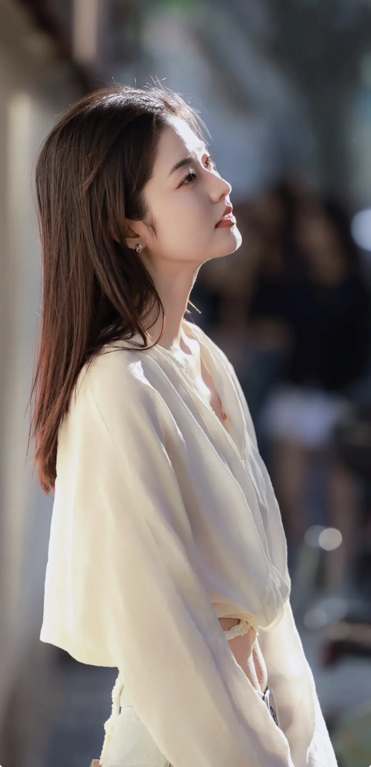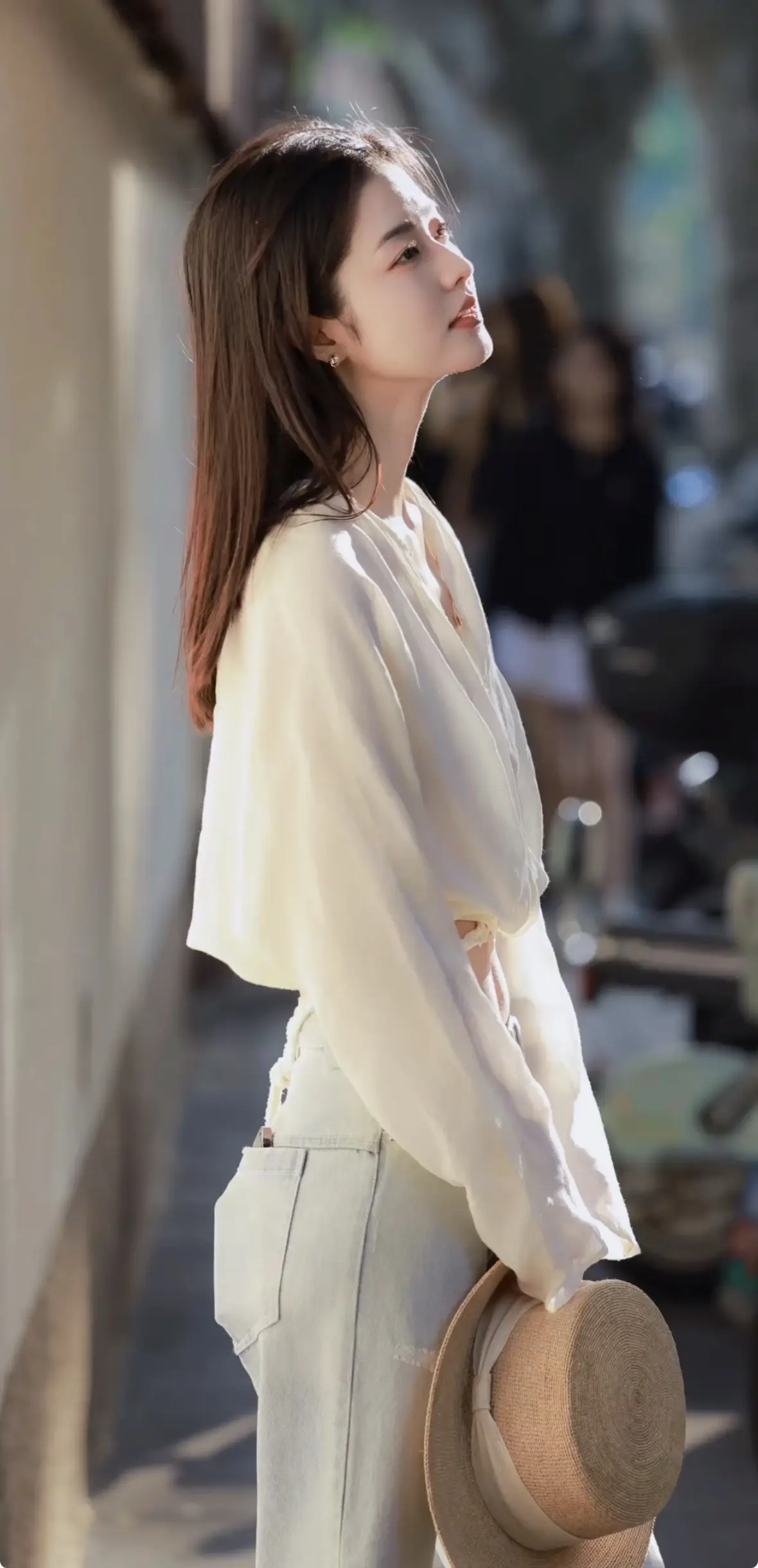 阳光下的白衣少女,海风轻拂,自由自在。街拍高清美女