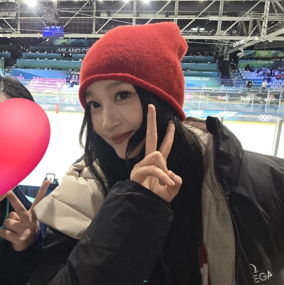 关晓彤在米兰冬奥看冰球比赛,路拍生图好看成这样