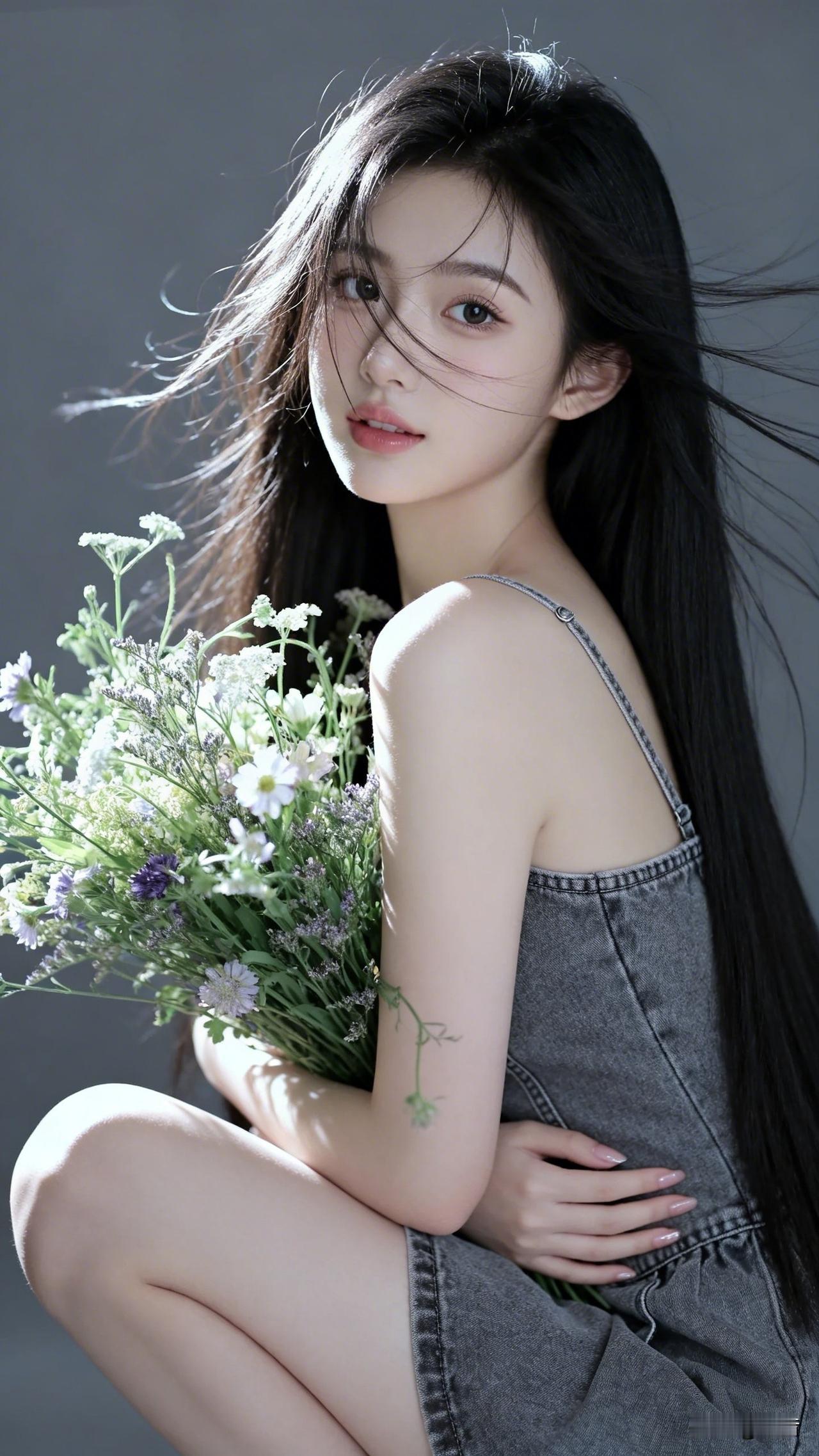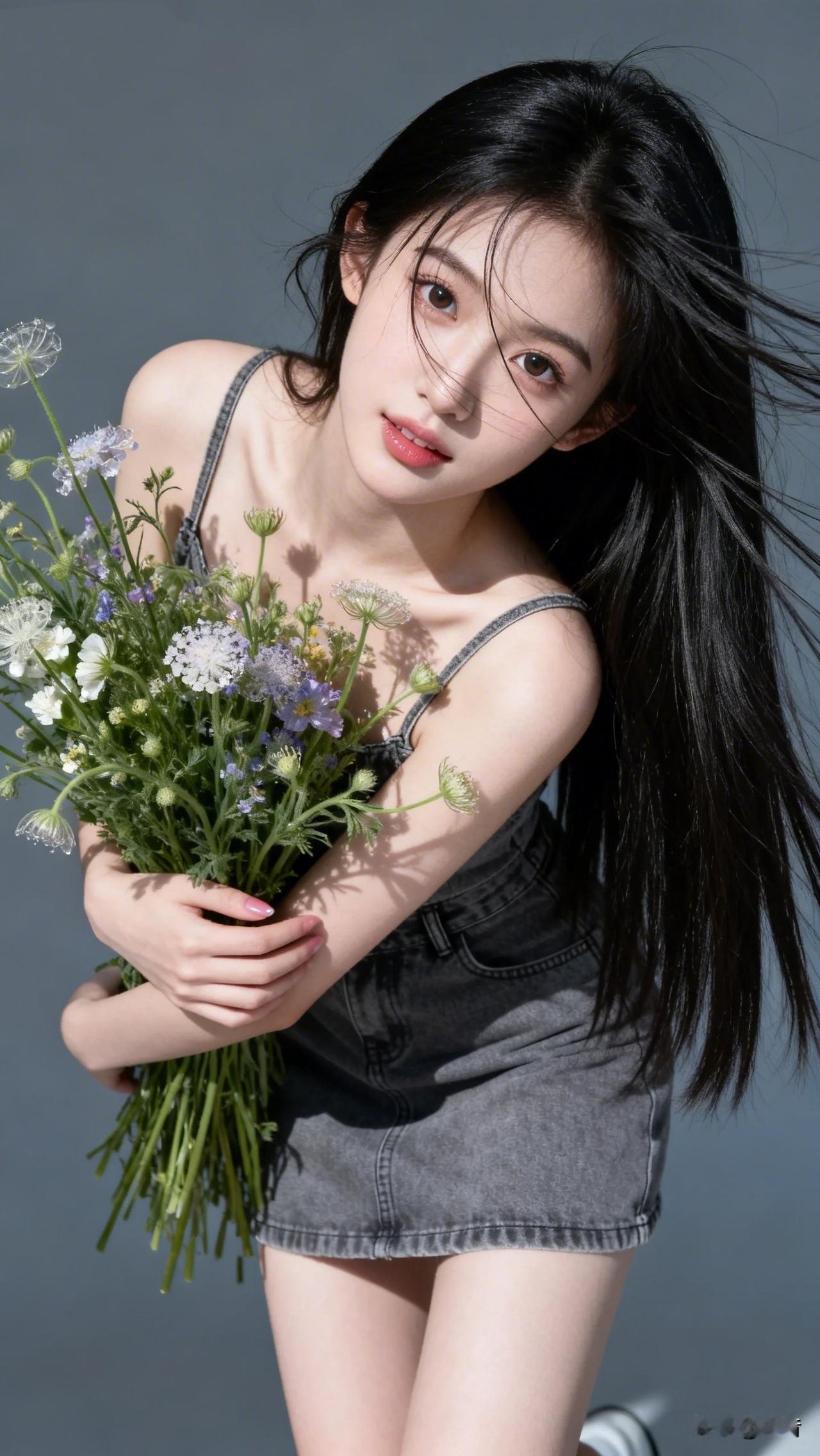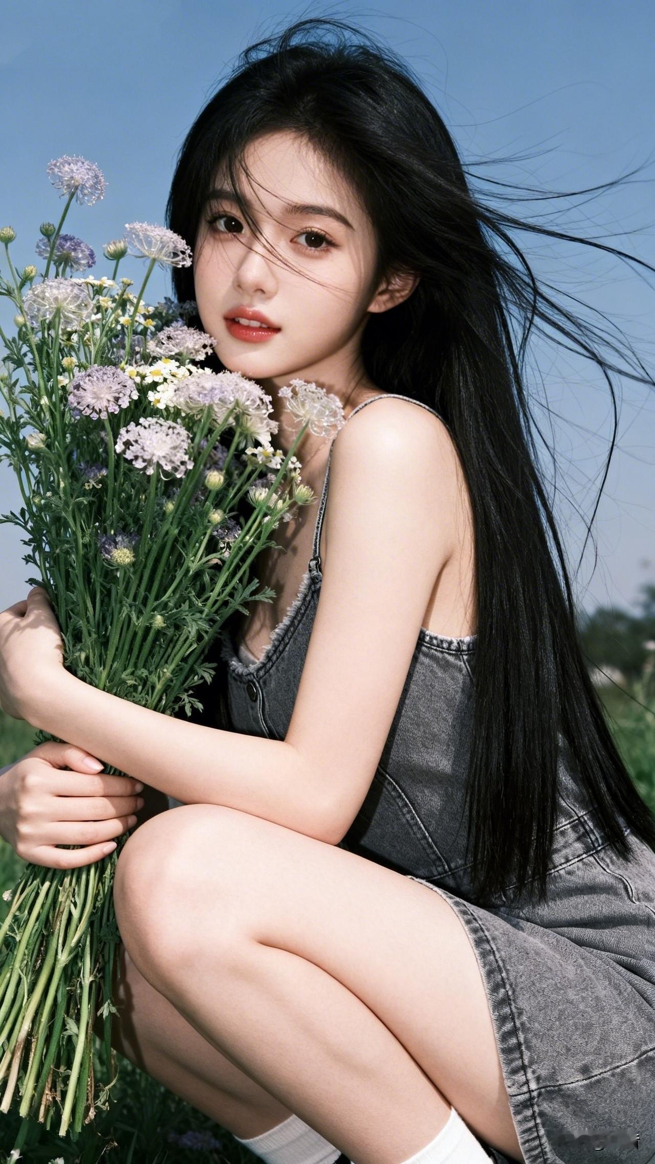 阳光 发丝 花和忽然吹来的风