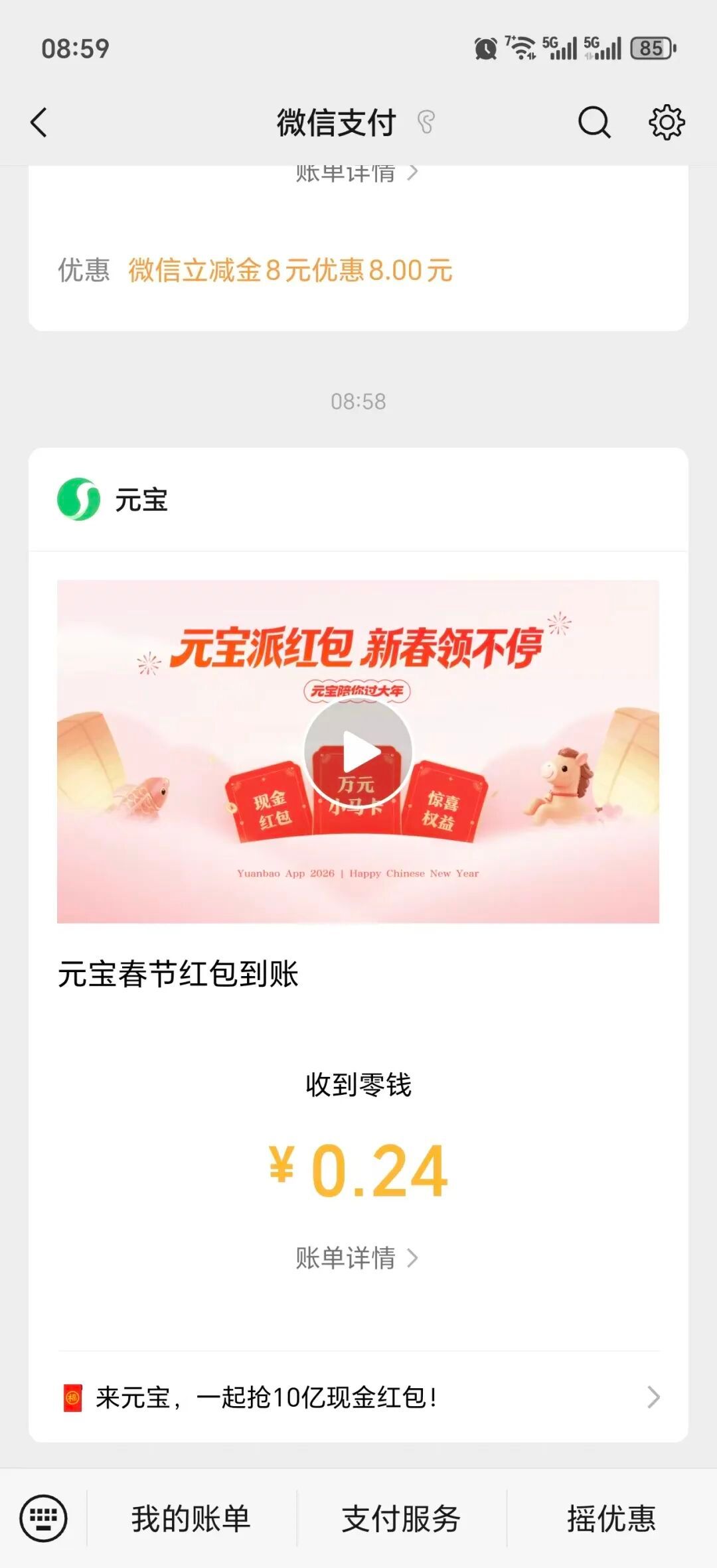 【#微信发送元宝领取红包可直接存入零钱# 】2月10日凌晨,发文表示:大家在微信里聊天试试发“元宝”两个字。观察者网测试发现,微信发送“元宝”有福袋掉落,红包将直接存入微信零钱。#元包红包#