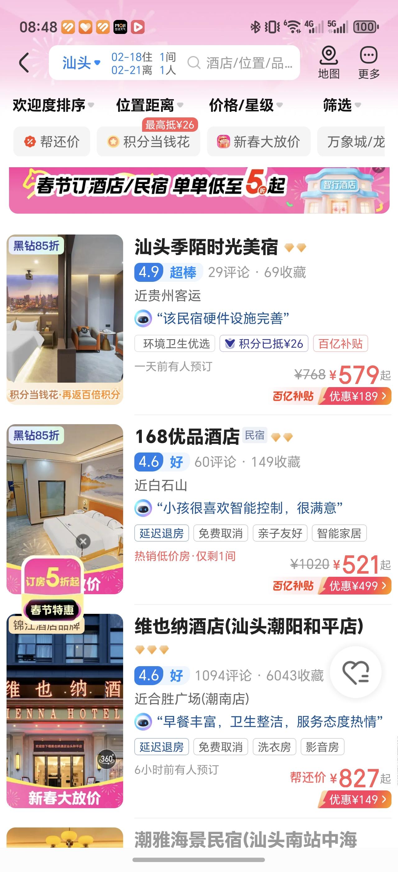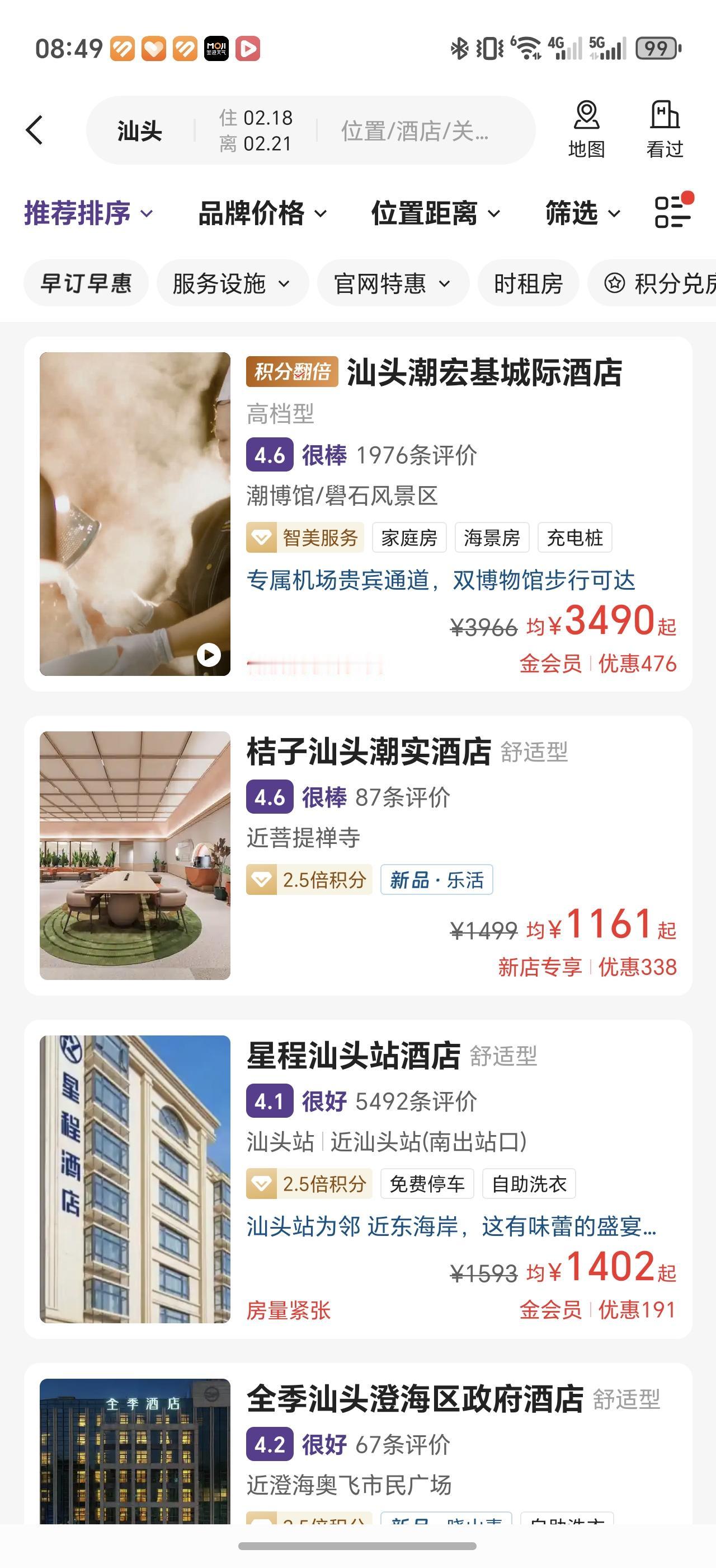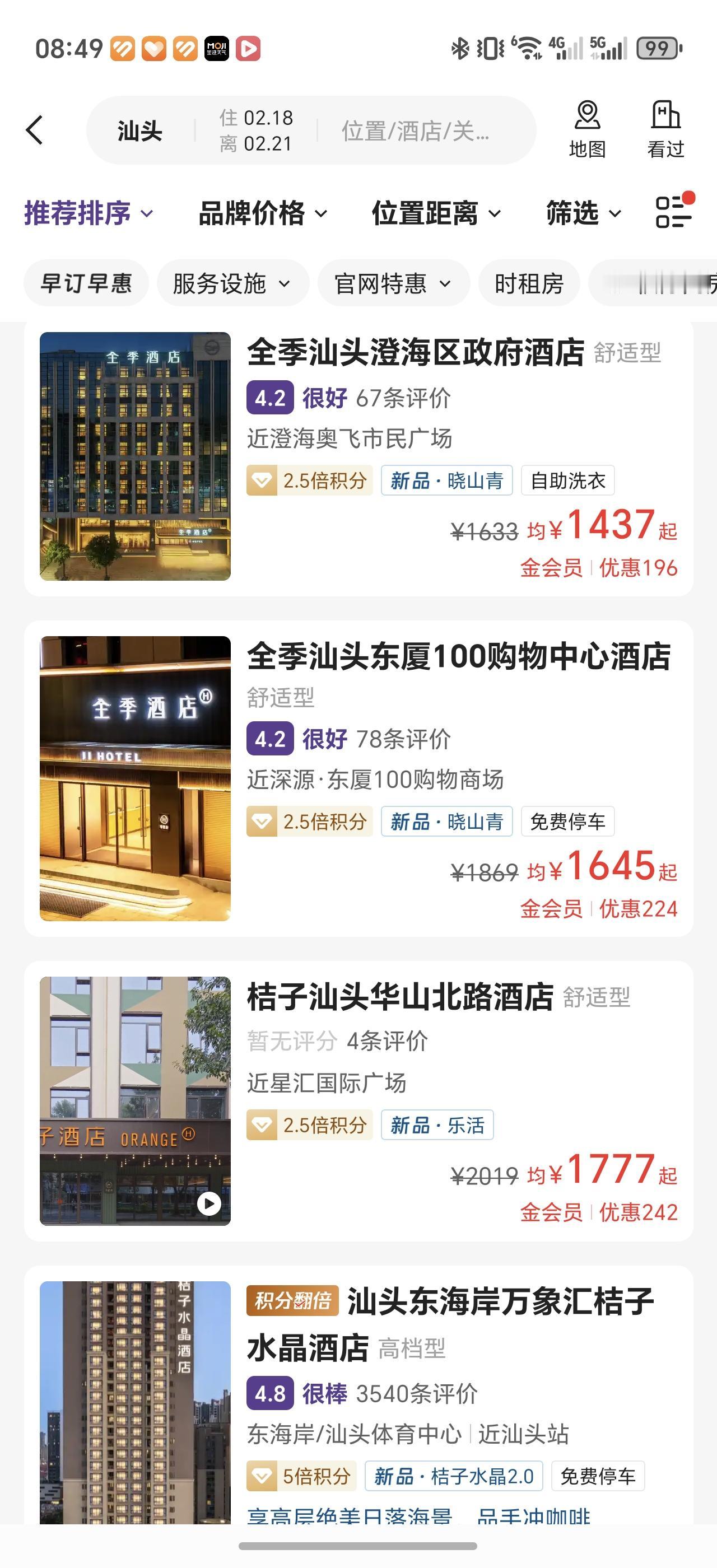 汕头旅店行业又开始一年一度的收韭菜模式。 昨天,一位江西的客户给我打电话说:能不能想办法搞到几间正月初一开始的便宜一点的宾馆房间。 我刚开始还没觉得这是个事。后来一看,年前几十百把块的那种所谓民宿,正月初二已经涨到500多,平常200多的连锁酒店,正月涨到了1000多。 去年过年的时候,也就是今年正月返岗的时候同事们就说,工厂门口80块的破房间正月涨到了800多。真的是无语了。 这几年潮汕地区旅游持续火热 带动了旅店行业的发展。但也不约而同让他们开启了收韭菜模式。 不止这种盛况能持续几年…