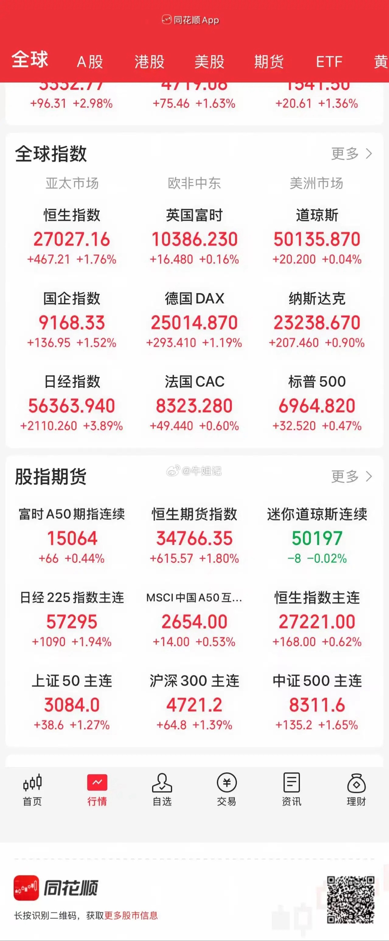 1、外盘汇总:小涨,震荡,如图一。 2、交易提示:无。 3、财经日历:无。 4、三大指数:1)大盘:继续看涨2)创指:新目标34703)科创50:兑现1500,再看1588 5、重要新闻:1)网信部等七部门对头部平台企业和快递企业开展用工行政指导;2)国家医保局:组建医保影像云跨省秒调阅医院网络;3)沪深北交易所优化再融资。 6、市场动态:1)百亿私募数量达122家创历史新高,上海地区57家;2)上海:加力推进城中村改造和旧住房成套改造;3)北京节水产业规模超150亿元,全产业链体系初步形成;4)青海发布《关于公开征集民营企业与疆电(南疆)送电川渝特高压直流工程投资的公告》;5)包头稀土产品交易所:稀土主流产品价格整体上行。 7、公司公告:1)浙江龙盛:分散染料部分品种2月8日再度调价,其中主要产品分散黑报价近期累计上涨5000元/吨;2)三元生物:公司通过特定单独税率渠道出口美国的综合执行税率达93.58%;3)中国宝安:未成为杉杉集团及其全资子公司实质合并重整的重整投资人;4)崧盛股份:股东拟合计减持不超5%公司股份;5)森霸传感:股东盈贝投资拟减持不超3%股份;6)中航光电:2025年度净利润同比下降36.69%;7)东威科技:2025年净利润同比增长86.81%。(关注点赞+评论,陪你一起到牛市)今日A股财经优质财经分享