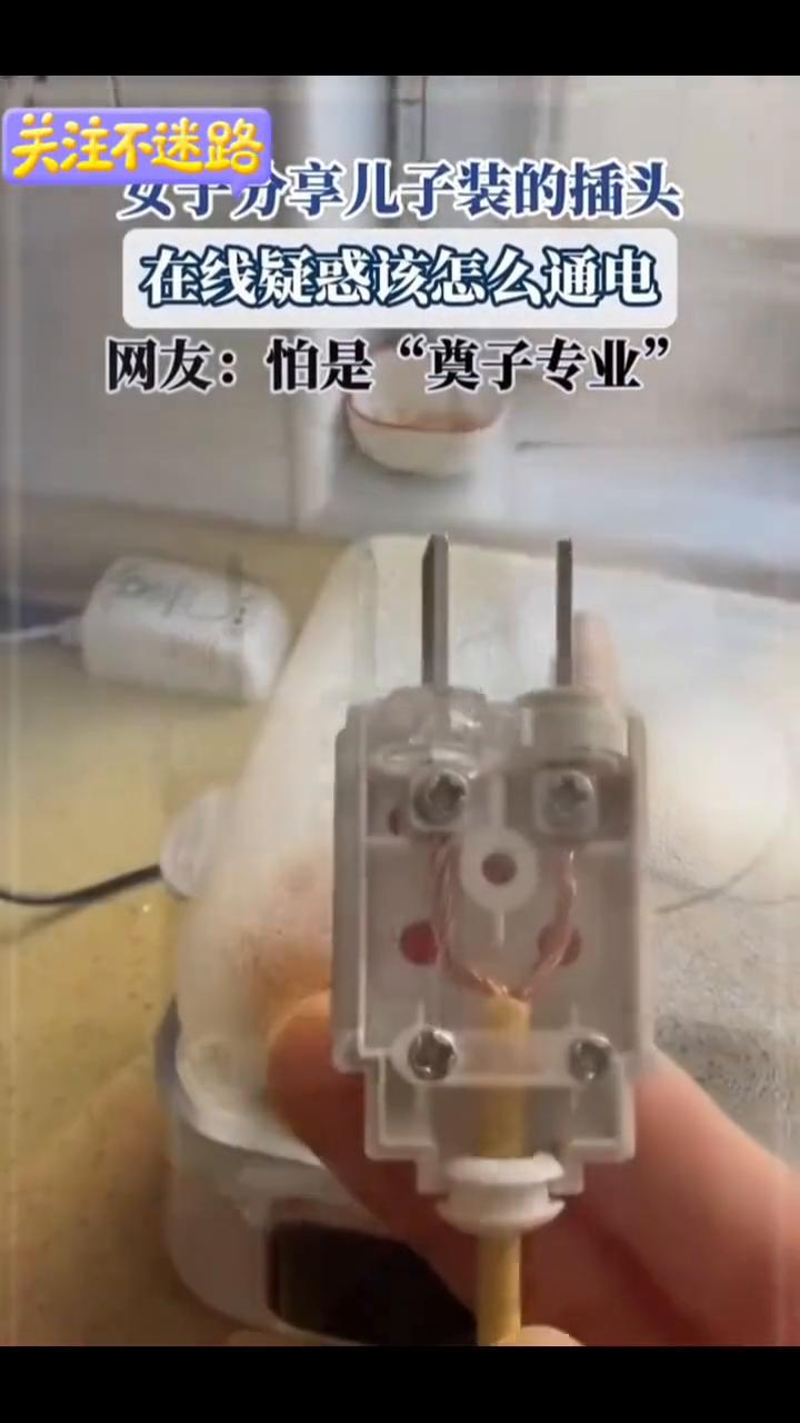 女子分享儿子装的插头,在线疑惑该怎么通电。网友:怕是"奠子专业"。 2月9日,河南郑州。 这就是我大儿子接的,我大儿子是读电子专业的,他现在跟我接了个插头是这样子接的,我想知道这个通不通。