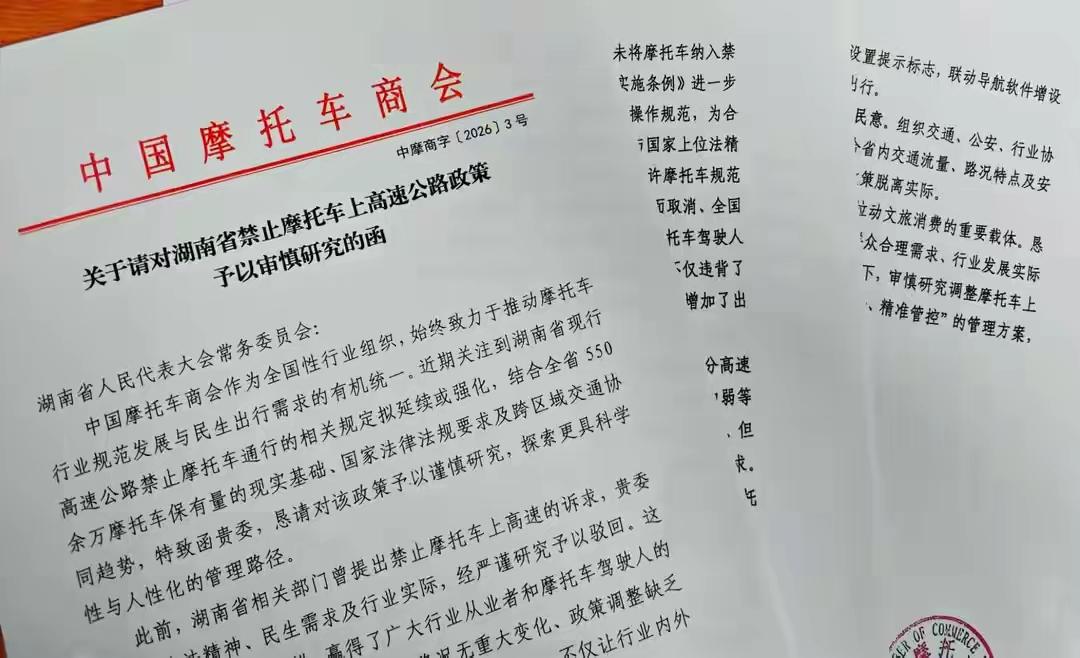 近日,中国摩托车商会致函湖南省人大常委会,就本省拟立法“一刀切”禁止摩托车上高速提出异议,引发广泛关注。争议核心在于该草案与《道路交通安全法》未禁止摩托车上高速的精神存在潜在冲突,且与湖南省人大此前驳回类似禁令所持的法理立场不一致。 湖南方面主要基于省内高速弯多坡陡、车道有限等安全考量。但作为摩托大省,此举直接影响超550万车主的出行权益,可能迫使其绕行更危险的国道。从产业看,全国近1亿辆摩托车保有量中,消费升级趋势明显,高速公路通行权是产业向高端化、休闲化发展的关键。 全国政策呈现“碎片化”:13省禁摩,而山西等地已转向“规范通行”。商会建议湖南借鉴“疏堵结合”思路,变“全面禁止”为“分类管控”与“科学试点”,通过严格规则而非简单禁令来平衡安全与权利。这场博弈不仅是路权之争,更是地方治理如何遵循法治、回应民生、促进产业发展的现实考验。摩托车政策 重庆高速摩托车 重庆禁摩托车 摩托车驾驶新规 摩托车能上高速 深圳摩托车禁令 摩托车高速政策