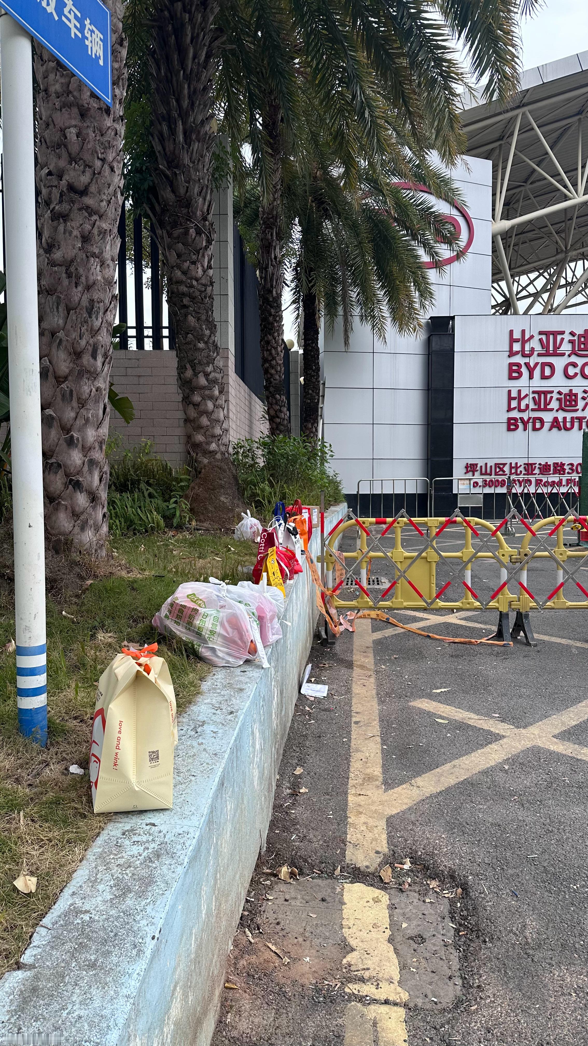 今天又来到财大气粗的比亚迪六角大楼取车但是…门口就不能给员工弄一个美观一点的外卖柜子吗?看着这些外卖吃喝都在地上放着,不但日晒雨淋主要影响司容呀