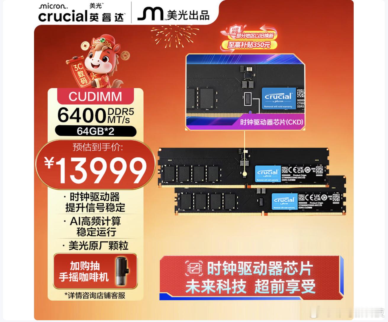 内存价格飙升90% 据Counterpoint报告,2026年第一季度内存价格环比上涨80%-90%,达历史高位。也没有多高嘛,两根内存条区区1.4w而已