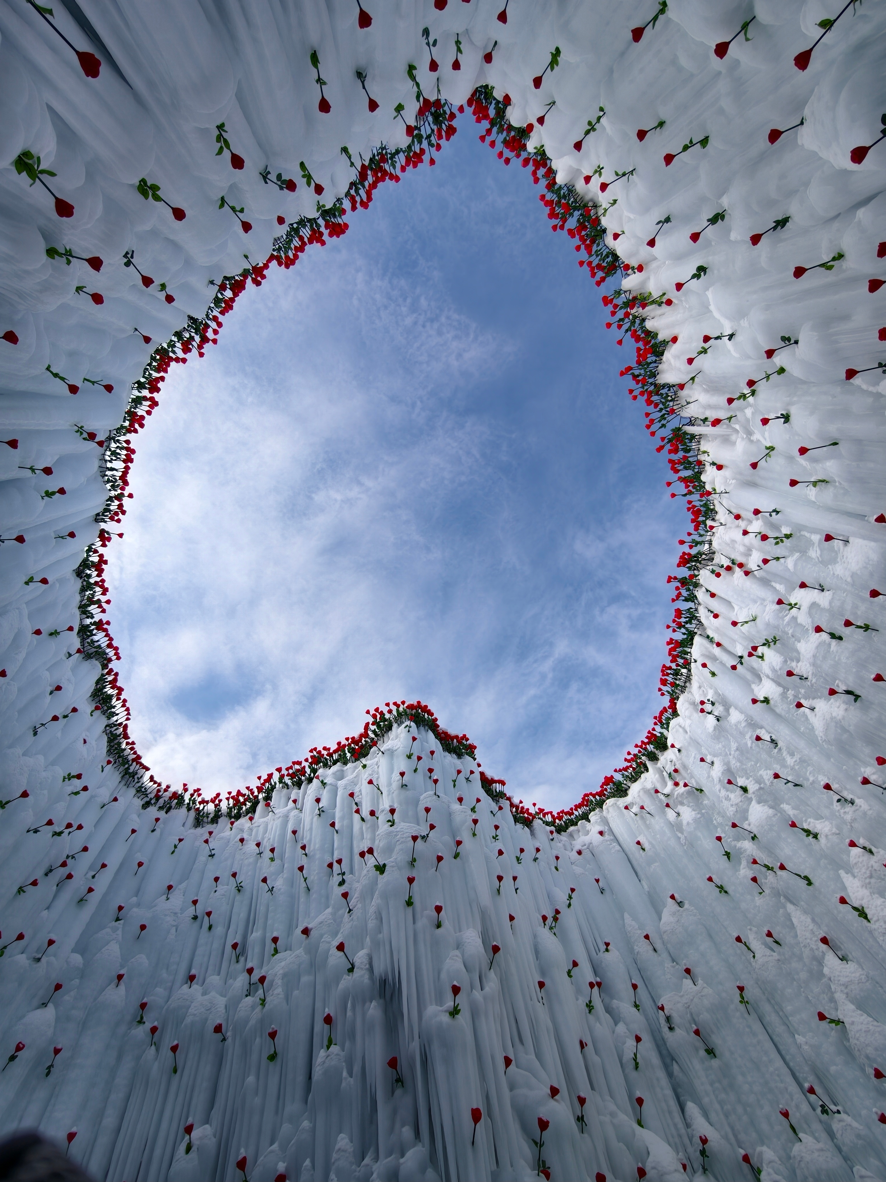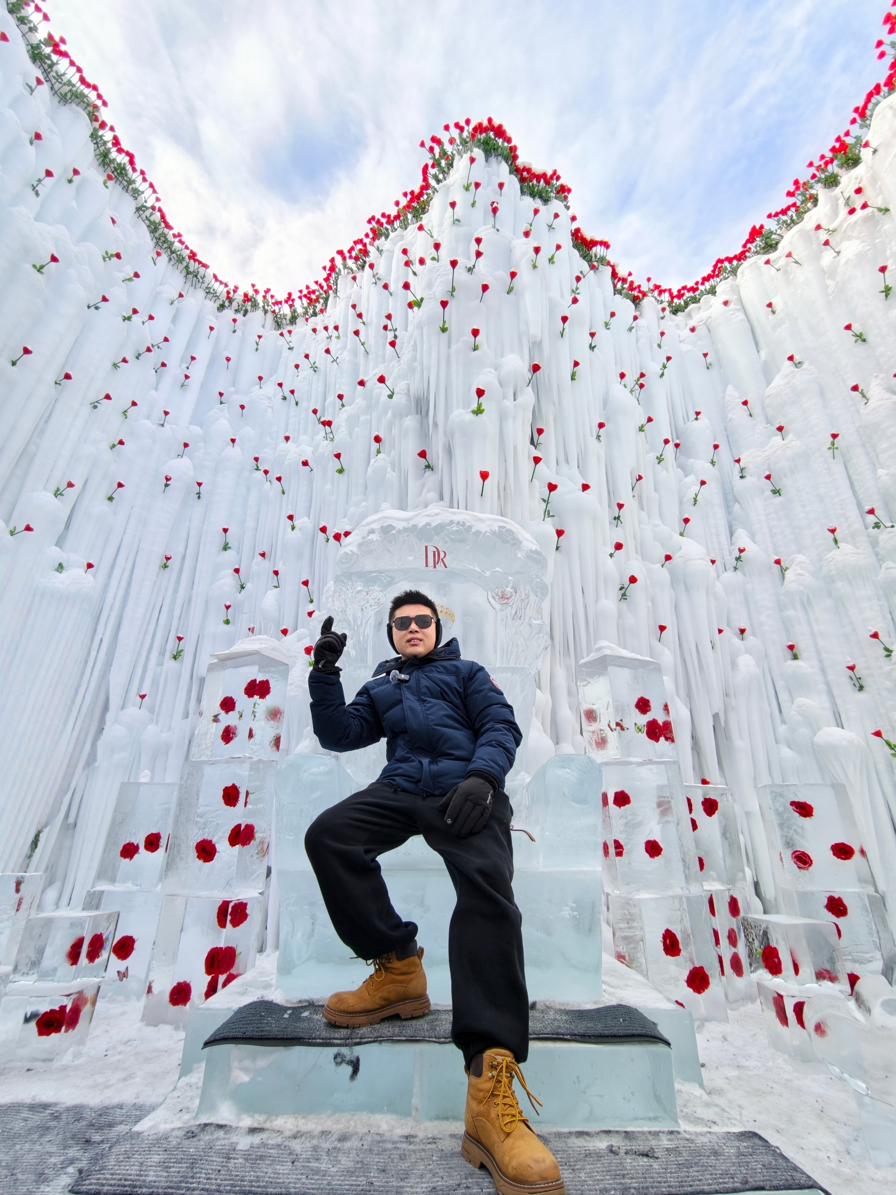 外国游客被长白山百万皇冠整破防了这个地方就是我前段时间开猛士M817去长白山打卡的鹿角村冰封玫瑰,没想到老外们也被冰封玫瑰给镇住了哈哈哈哈。这个心形的冰雕确实很震撼,很多人在里面拍照!