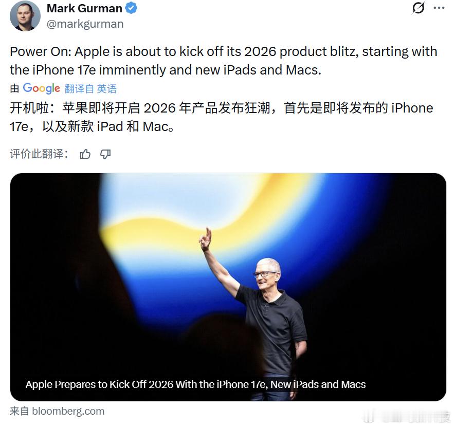 苹果将发布多款新品 马克 · 古尔曼提到苹果今年春季将会发布多款新品,包括:iPhone 17e、iPad 12/Air 8、M5 Pro / Max MacBook Pro