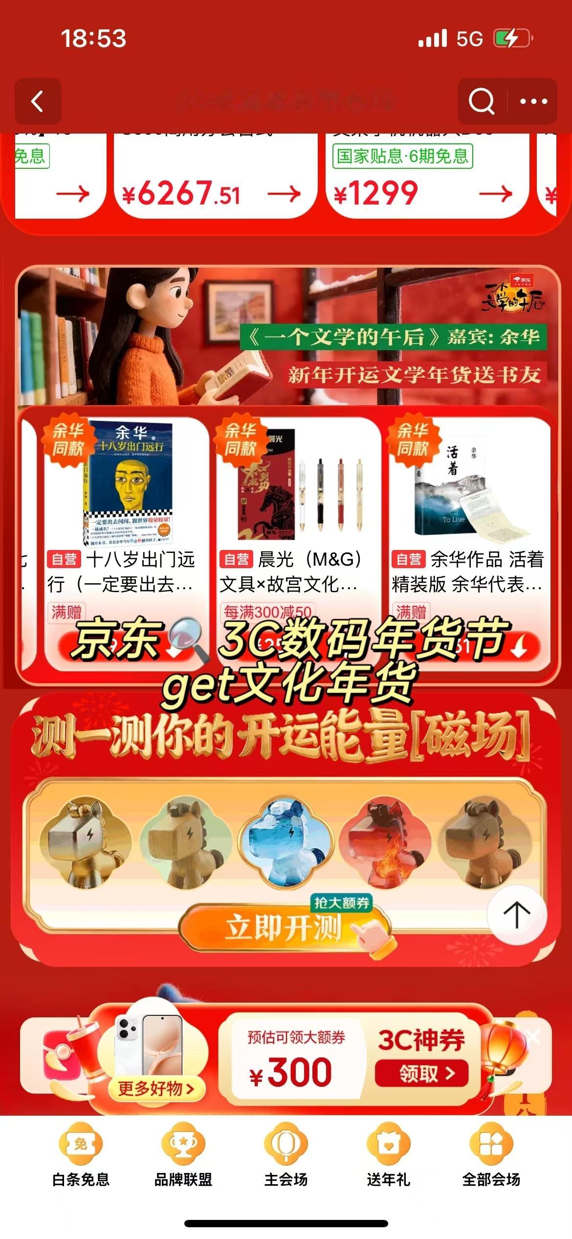 《活着》和《十八岁出门远行》,一本写透了生活的韧劲,一本记录了年轻人的困境与成长,简直是心头的白月光啊!这年礼也太棒了吧!!还是余华老师亲手送出的!!现场还有锦福北高峰财神庙联名春节礼盒和晨光马到成功笔,这波文学气息和祈福寓意直接拉满🧡想 get 同款的直接上京东,新春好书满100减30,祈福文具88折,1分钱抽千份IP周边,京东文具还是次日达,春节不打烊!换手机电脑记得上京东🔍「3C数码年货节」或戳【网页链接】,领国补叠加以旧换新5折起!!读万卷书充实大脑,用新装备武装生活,新的一年,向内生长,向外探索!余华把年货快乐都送给老己年货节买3C数码上京东小年上京东买年货领2026元补贴京东买年货 又好又便宜