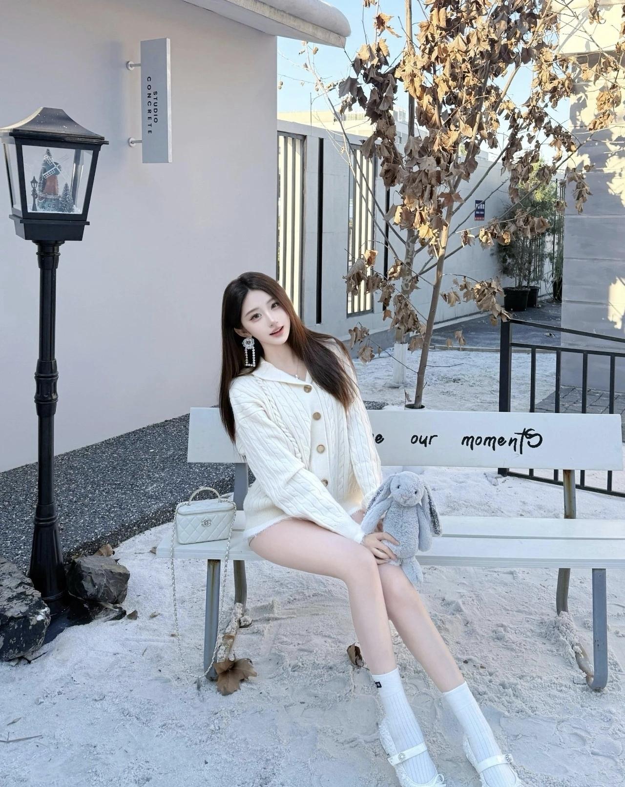 秋日穿搭指南:米色毛衣+白色短靴,轻松出街