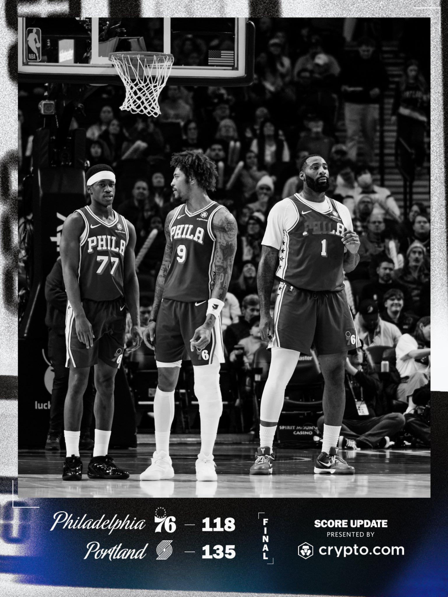 “五连客”3胜2负!全场比赛结束:76人队客场118-135不敌开拓者!马克西30分4助攻,乌布雷19分4篮板4抢断2封盖,埃奇库姆11分6篮板3封盖,德拉蒙德11分7篮板6助攻,沃特福德12分3助攻,爱德华兹12分4篮板3抢断,比彻姆10分4篮板4助攻,洛瑞6分!