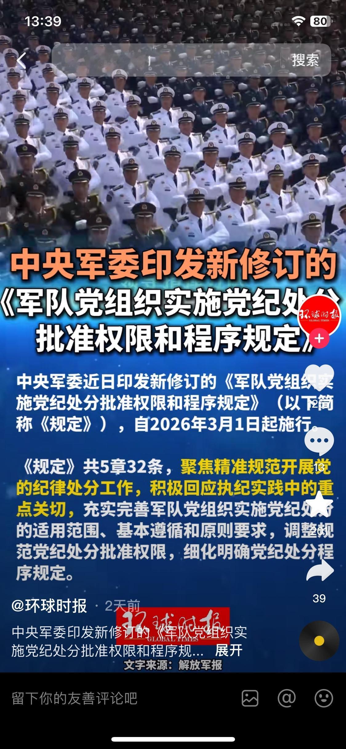 三月一号这天,估计部队里不少人心里要咯噔一下了 二月刚下的文件,三月就立马执行,一点喘息的机会都不给,这速度确实罕见 新规32条,就是把各项要求都细化得清清楚楚,没有含糊不清的地方,每一条都有明确的指向。 以往在不少事务的落实上,容易出现界定不清晰、衔接不顺畅的情况,这些小问题现在都被一一规范到位。 就像基层日常的各类事务处理,以前偶尔会因为流程不明确耽误进度,如今32条直接把该走的流程、该负的责任都定死了。 能做到发文不久就立刻执行,足以说明所有条款都经过了细致梳理,完全具备直接落地的条件。 这次的新规核心就是把标准立得更严谨,不管落实到哪一步,都有清晰的参照,不用再靠摸索推进。 大家会有这样的感受,也是因为这次没有预留过渡适应期,新规直接生效,节奏和以往比确实紧了很多。部队新规 部队规章制度