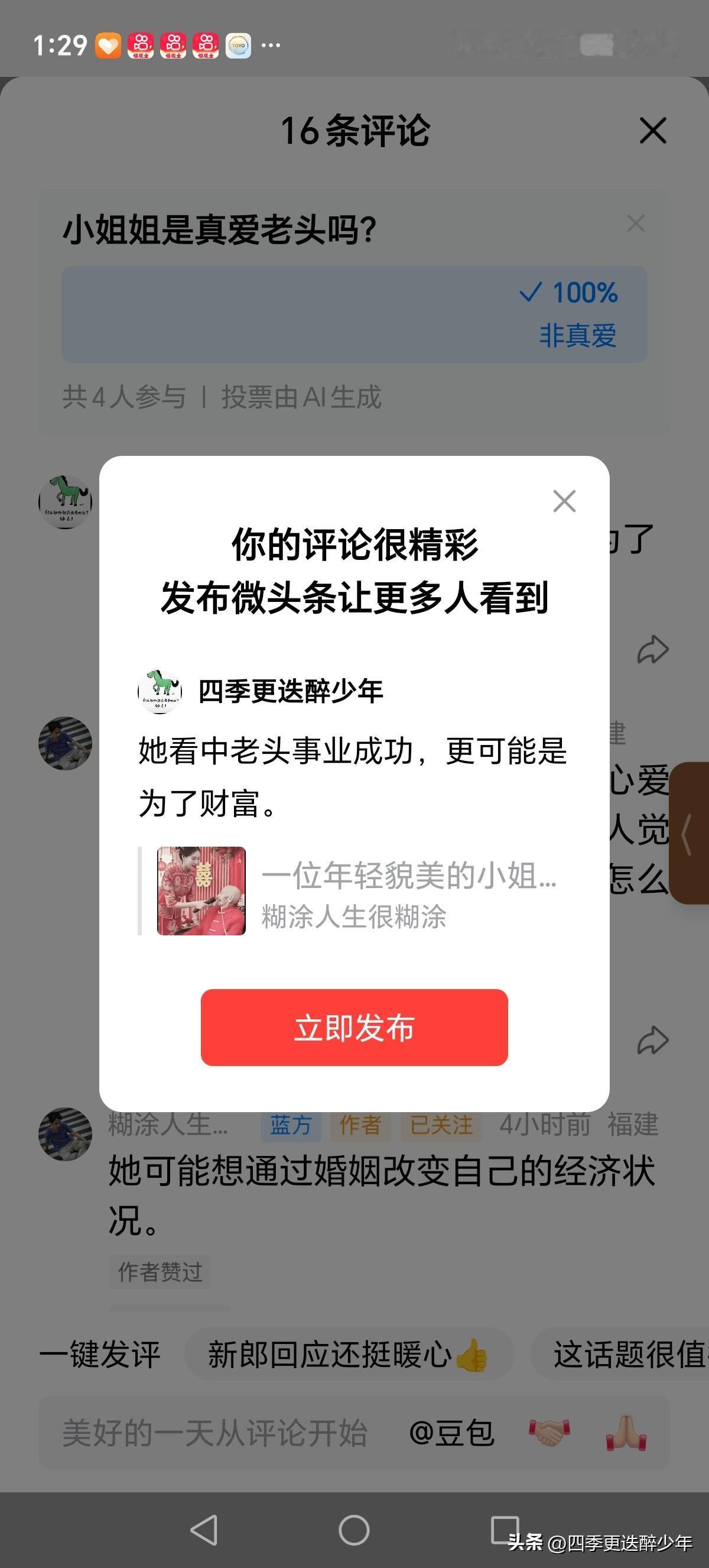 她看中老头事业成功,更可能是为了财富。 动物都学会了欺骗,何况人乎?真爱是最