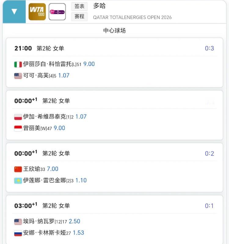 多哈今日赛程!! 郑钦文、王欣瑜、张帅都将有登场!! 22:00率先登场的是澳网女双冠军张帅/梅尔滕斯组合对阵施耐德组合(梅尔滕斯一日双赛)、 23:30郑钦文将登场,对阵淘汰施耐德的公园姐帕克斯,其他场次可以不看,但这一场必看!! 0:00王欣瑜将登场,对阵新科年终及澳网女单冠军莱巴金娜,想赢除非有奇迹!!所以这场就纯看颜吧!! 还有各大种子都将登场,高芙、丝袜、保总、火娃、纳瓦罗等都将登场!目前为止,阿尼西莫娃(伤退)是出局最大的种子选手!!WTA100多哈 郑钦文赛程安排