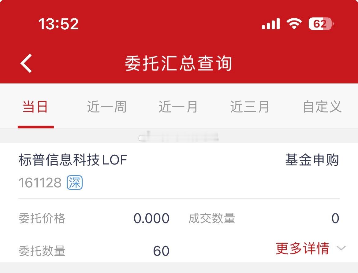 套利 今天申购一只标普信息科技 ,溢价率3%,限额10。卖出了昨天误操作的天润工业 sz002283[股票] 仅供参考,抄作业有风险,套利需谨慎,所有申购盘中跳水,溢价率抹平或大幅缩小将撤单!实盘贴图仅作为个人记录之用,不构成任何投资建议及操作指引!盈亏自负,切勿盲目跟风!