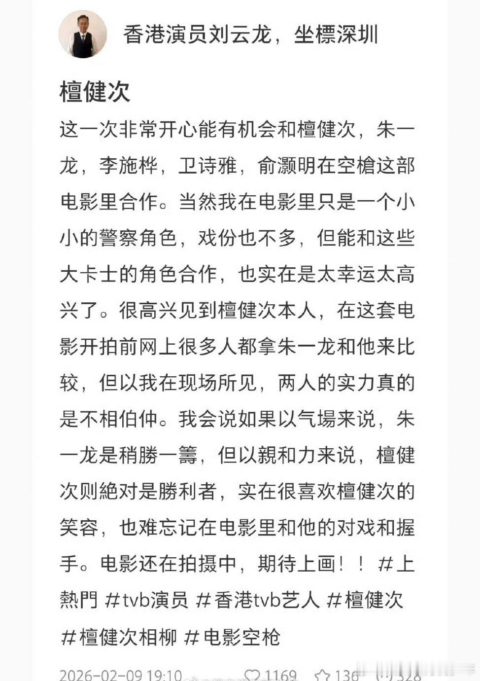 檀健次叮嘱粉丝别熬夜等他香港演员评价檀健次: 很有亲和力的一位演员,很喜欢檀健次的笑容 。何不同舟渡无人机应援那天晚上~檀健次在天台等了一个半小时…剧组安保都说他好爱这么优秀的人真的值得所以的偏爱!檀健次叮嘱粉丝别熬夜等他