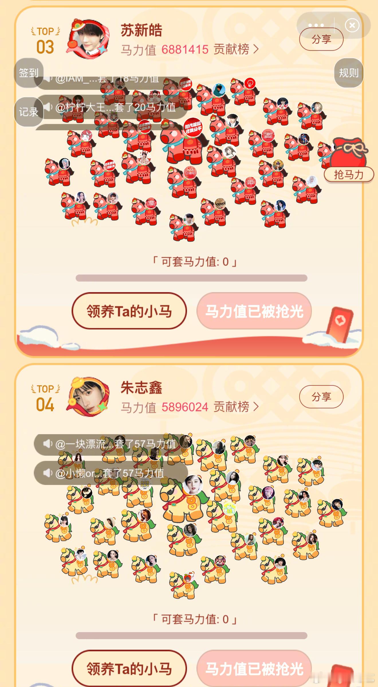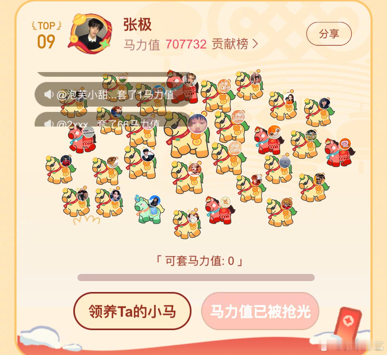 内娱男明星有多爱养马 这一次春晚大赏的养马活动发现好多爱养马的人,目前前九位,一起马力全开!财富、安康、好运、桃花、团圆、宏图,各种小马都来啦!