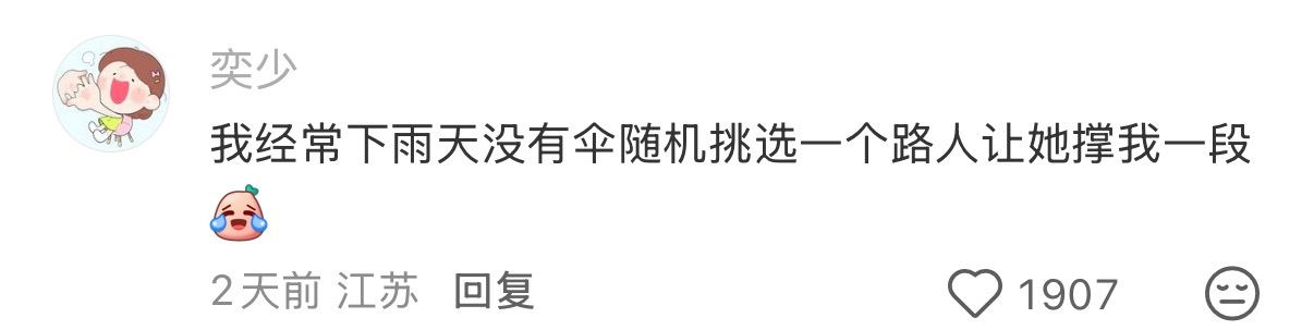 讲真的,我一直有个想法就是“下雨天没有伞随机挑选一个路人让他撑我一段…”