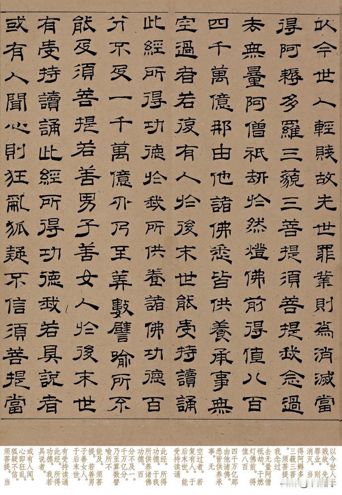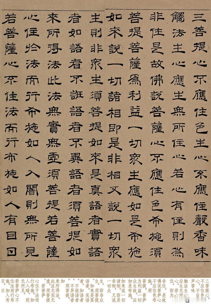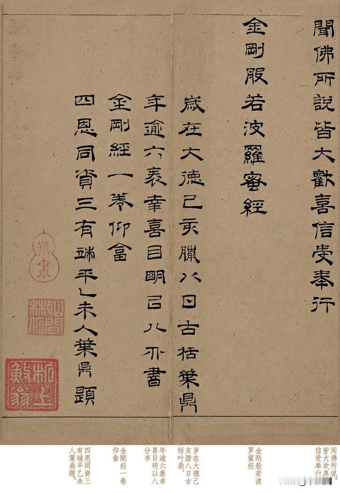 南宋宫廷流出一部《金刚经》,赵孟頫秘藏多年,这才是“最美中国字”! 宋朝的皇帝几乎人人都是书法家,他们不仅写得好,也重视培养宫廷书家,搜集天下法帖。书法界有一种说法,认为宋代的宫廷书家“米癫精行草,叶鼎尚篆隶”,即使是米芾的行书、草书当居魁首,而叶鼎则是篆隶二体的“执牛耳者”。 叶鼎此人声名不显,且仅有一部作品传世,那便是隶书《金刚般若波罗蜜经》,南宋以来很多书家都以此作为启蒙,作为入门法帖练习,如姜夔、赵孟頫、文徵明、董其昌、吴昌硕、邓石如等。 此作现藏于台北故宫博物院,为纸本册页,共20折、40页,每页纵约30.5厘米、横约20.6厘米,总长度超过8米,5000余字完完整整,单字大小约1.5厘米。 此作曾为赵孟頫秘藏多年,后来他将之进献宫廷,全卷高古自然,无半分俗气,更无元代以后隶书“难脱楷意”的弊病,称得上“最美中国字”了。此作笔法规范精湛,兼具汉隶精髓与文人质感,这是此作最核心的优势。 叶鼎的隶书笔法直接师承汉碑,尤其借鉴了《曹全碑》的秀逸与《张迁碑》的厚重,去其纤秀、取其沉雄,形成了自身圆润、端庄内敛的风格。 书写时以中锋行笔为主,饱满扎实,无丝毫单薄浮躁之感,起笔蚕头饱满,入纸沉稳,行笔过程中提按顿挫清晰,横画行笔轻重交替,竖画挺拔沉稳,收笔舒展有度,不刻意夸张、不拖沓无力。 同时,笔法中融入少量篆意,更显凝练厚重,摆脱了南宋隶书常见的技法单薄问题,尽显扎实功底。结体平中见稳,规整端庄且不失灵动。 每个字的结体都经过精心把控,左右结构的字左收右舒、上下结构的字上紧下松,疏密对比恰到好处,却不呆板僵化,实现平中见奇,避免了隶书书写中“状如算子”的弊端。 章法布局严谨有序,字距、行距均匀适中,通篇排布整齐有序,无杂乱之感,既符合抄经作品的规范要求,又体现了叶鼎对章法的精准把控,让整幅作品既庄重肃穆,又有文人书法的温润气韵。 南宋时期,隶书整体发展不及汉隶兴盛,大多书家的隶书作品要么刻意模仿汉隶却失其神韵,要么技法单薄、缺乏特色,而叶鼎的这幅字独树一帜,郑思肖盛赞其“由心法得字法,止心法得佛法”,精准点出作品笔墨与经文内涵的完美融合。 对于当代隶书学习者而言,此作笔法规范、结体清晰、章法规整,是极佳的入门与进阶范本,临摹时既能掌握隶书的核心技法,又能领悟汉隶古法的传承之道,避免走入“技法浮夸、脱离法度”的误区,是汉隶精髓在后世传承的重要载体,其艺术价值与学习价值值得细细品味与深耕。 而今,我们将此作进行了超高清12色微喷复制,细节与原作别无二致,并添加释文一一对应,便于您临摹和欣赏。 宋叶鼎隶书金 台博高清原大微喷复刻手工经折装临摹字帖