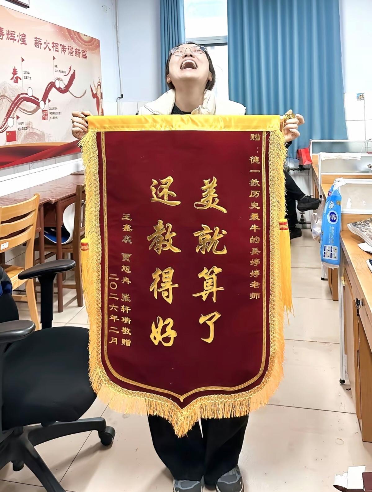 老师收到锦旗直接笑翻!这波夸赞太会了——“美就算了,还教得好”,既凡尔赛又扎心,网友集体喊话:这文案该上教科书!传统锦旗清一色“桃李满天下”,这届学生直接玩出新高度,把对老师的爱慕和佩服全砸进这十个字里,老师当场笑成表情包,屏幕外的人集体酸了:这班我上定了! 这锦旗妙就妙在“矛盾式暴击”!前半句“美就算了”看似谦虚,实则把颜值拉满——老师长得好看是老天赏饭吃,但重点在后半句:“还教得好”瞬间反转,教学能力直接封神!就像吃火锅发现底料藏着秘制配方,惊喜层层加码。学生这波操作,既满足颜控的尖叫,又让实力派狂喜,老师拿着锦旗估计连做梦都偷着乐:这届学生,太会了! 细品这夸赞,藏着三重深意:一是打破“老师必须严肃”的刻板印象——美和教学好,能并存!二是学生用调皮语气拉近距离,师生关系像朋友般轻松。三是用反差制造记忆点,比传统文案更出圈。这不,视频一刷屏,评论区炸锅:“建议全国推广!”“老师缺课代表吗?我立马到岗!”流量和口碑双赢,学生这波操作,妥妥的营销天才。 说到底,锦旗爆火背后是教育观念的升级。过去夸老师只讲奉献,现在学生更敢表达真实感受:老师长得美是加分项,教得好才是王炸!当教育不再板着脸,当师生能用幽默传递敬意,这样的课堂谁不爱?