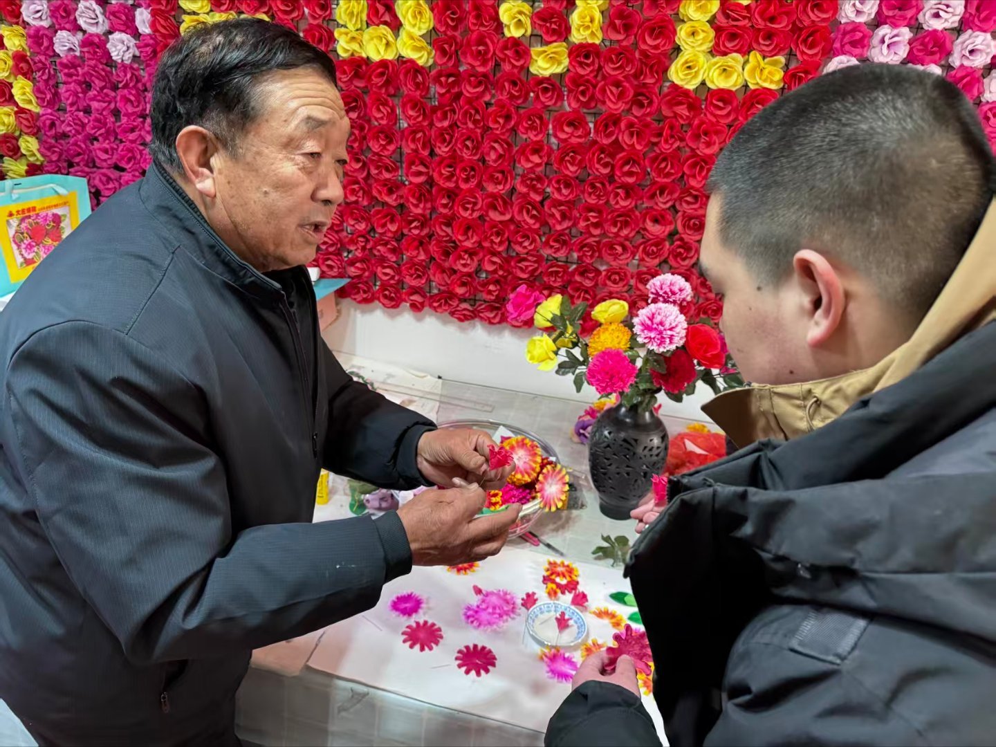 秦岭笑谈【探秘非遗绢花艺,传承文化青年行】曲阜师范大学大学生寒假社会实践2026年1月16日,曲阜师范大学生命科学学院“乡韵承古,温情相伴”实践队造访曲阜大庄绢花文化园,领略省级非遗曲阜大庄绢花的技艺。在传承人张祥冬老师的讲解中,队员们知晓了该项工艺的历史脉络、独特技法及其文化内涵,也了解到其传承面临的挑战。大家参观制作工坊,观摩选料、染色、组合等流程,深感匠人严谨专注的精神。部分队员在老师指点下体验了简易制作步骤,亲身感受手艺之精妙。这次走访不仅让队员们体会到非遗的魅力,也激发了大家守护传统文化、承担传承使命的热情。