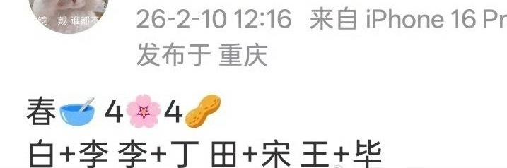 🍉 2026春晚嘉宾 合唱节目白鹿 李昀锐、李兰迪 丁禹兮、田曦薇 宋威龙、毕雯珺 王玉雯