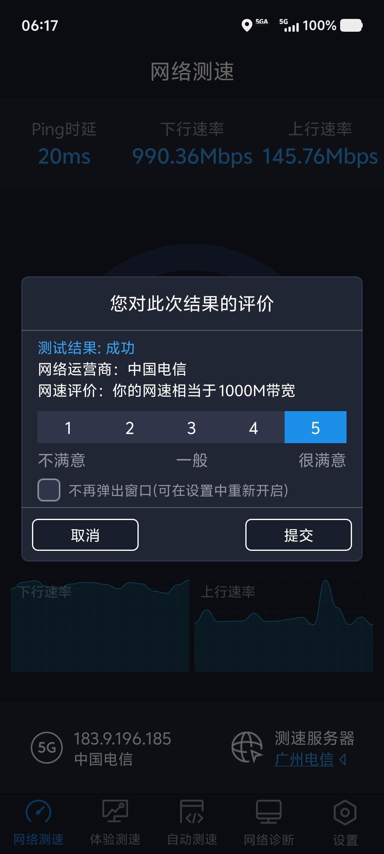 广东电信的用户可以试下这个业务,免费的5G-A业务测试包,30天免费,解锁更快的5G速率。 随便跑了几次,基本能达到千兆的速率,据说峰值可达3000Mbps,主要看基站是否支持。