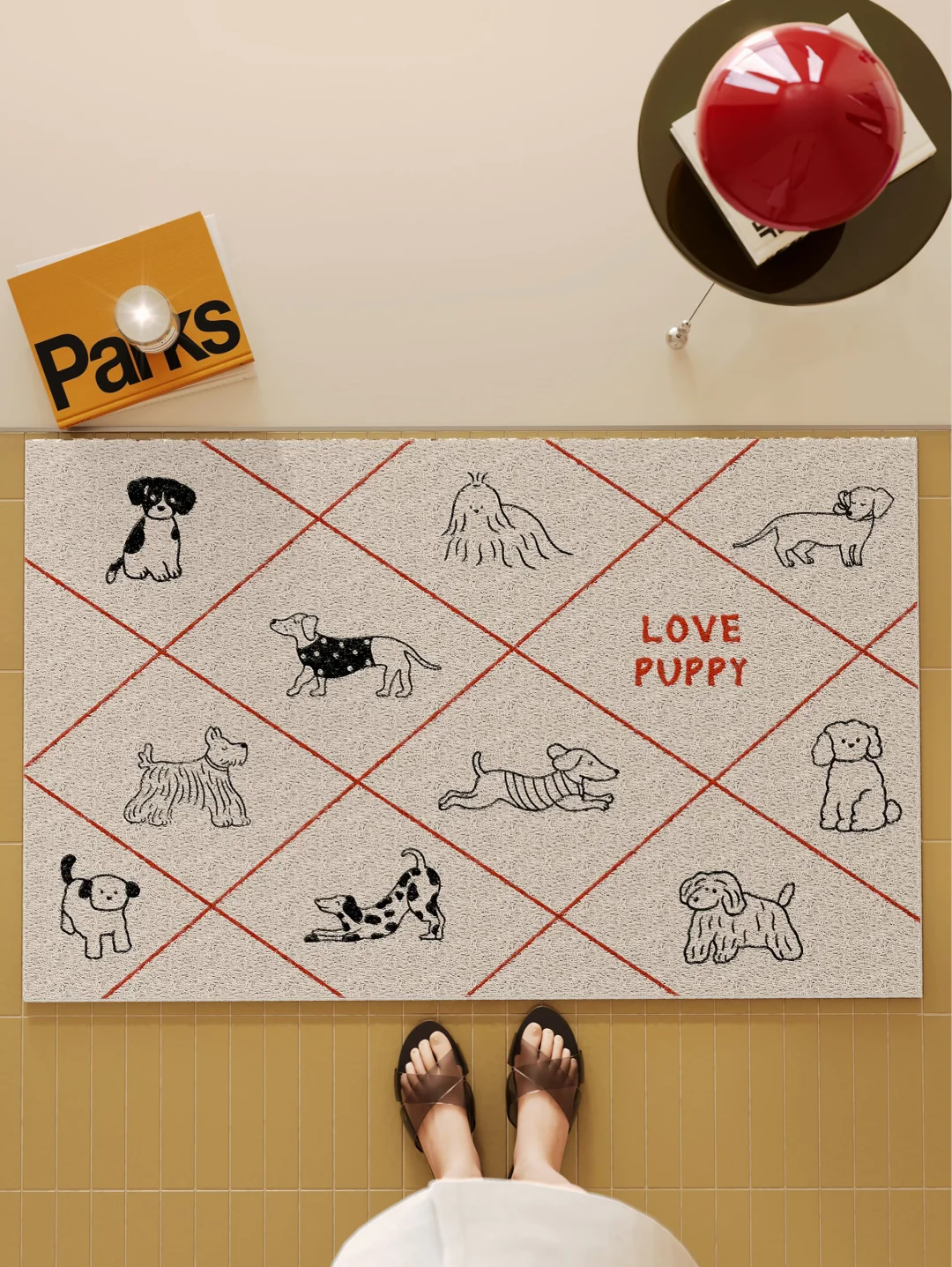 🔸小狗乐园暴击! 一进门就被可爱拿捏了🐶 谁能拒绝满是软萌修勾的入户地垫啊! 手绘风线条软 fufu, 奶呼呼的浅米色底, 一整个治愈住, 踩上去像陷进软乎乎的小狗乐园✨ - 丝圈材质刮泥蹭土超给力,脏了直接冲一冲就干净 不同小狗图案像拼贴画一样,边牧、斑点狗、长毛修勾… 每一只都憨到心坎里 和 ins 风玄关适配度 100%,开门就是好心情 爱狗党真的会疯!玄关瞬间变可爱小狗乐园,朋友来都要夸八百遍🥰