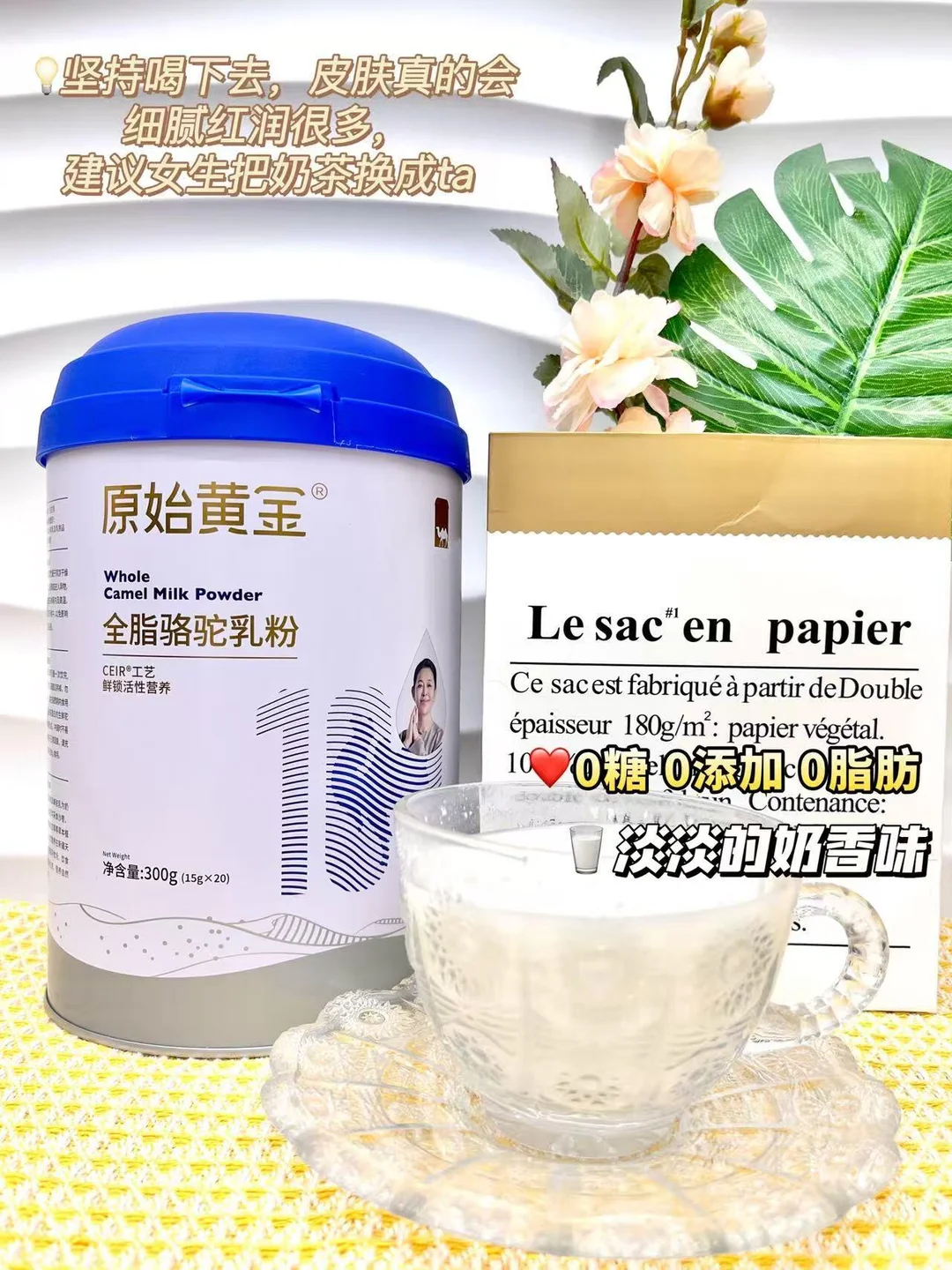 奶源源自新疆双峰驼乳,骆驼采用半散养模式,营养密度高,奶源纯粹,自有工厂的,品质全链路严格把控,达欧盟标准,经SGS检测0色素、香精、防腐剂。