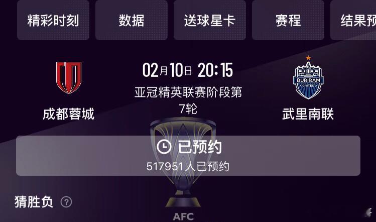 开年大战一触即发。截止目前,成都蓉城已有51.8万人线上预约,上海申花36.7万人预约。