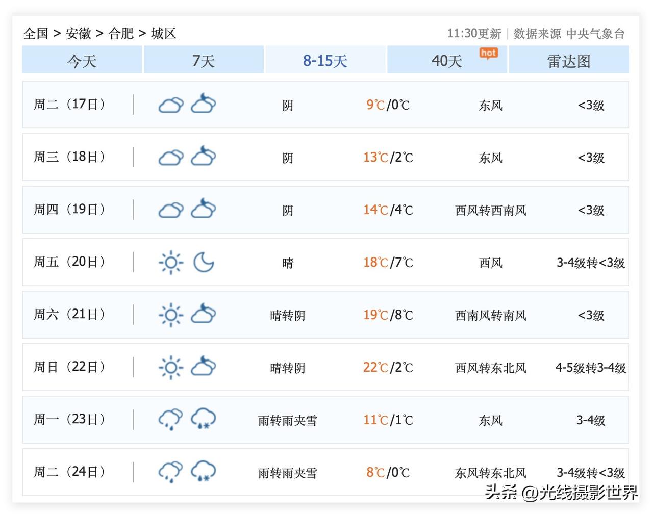 春节假期,超强冷空气将会速冻安徽省合肥市!2月11日到24日,一共有两轮非常刺激的过山车天气,反反复复的折腾合肥的小伙伴啊!啊啊啊……这天气预报,看得人,心惊胆战吧?! 2月11日到14日,合肥市快速升温,最高气温20度…… 2月16日,除夕夜当天,合肥降雨降温,气温暴跌至2-5度。 …… 2月18日到22日,合肥市,迅速回暖,最高气温冲刺22度…… 但是,2月23日和24日,正月初八,合肥市再次遭遇超强冷空气和迅猛寒潮……雨夹雪……最低气温跌至0度……啊啊啊! 升温,降温,升温,降温……可能一直会反反复复折腾到3月15日左右……3月中旬,合肥才会持续稳定的温暖春天……